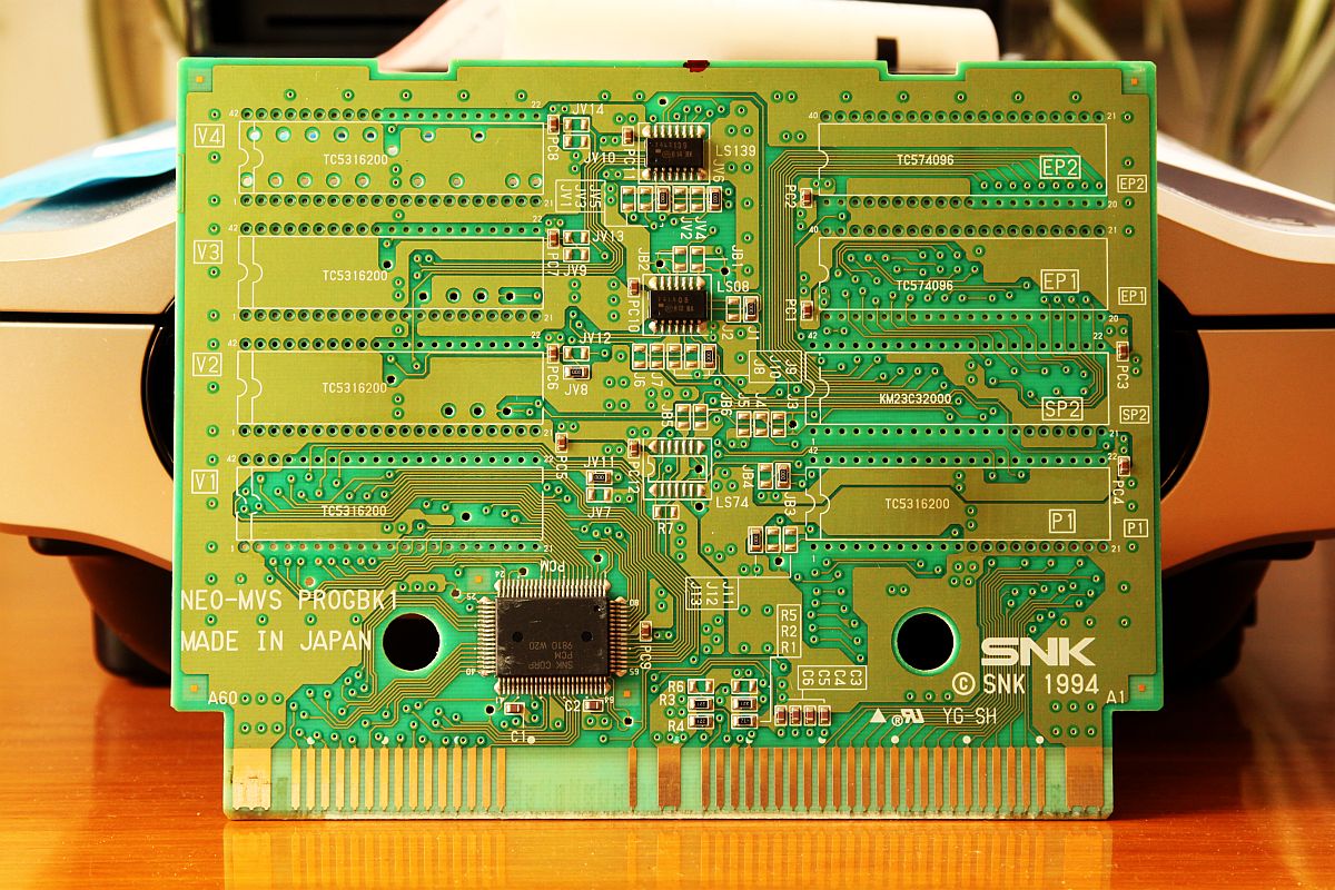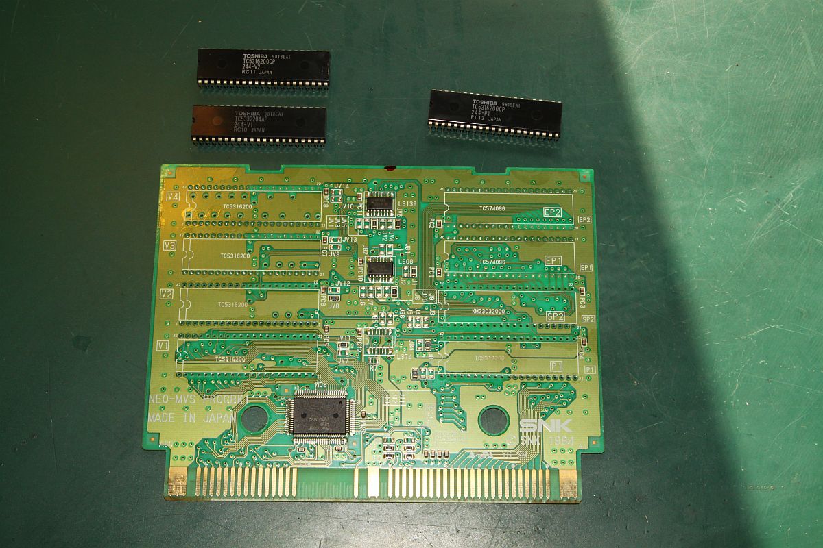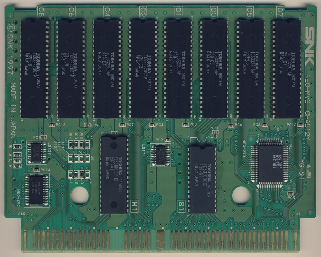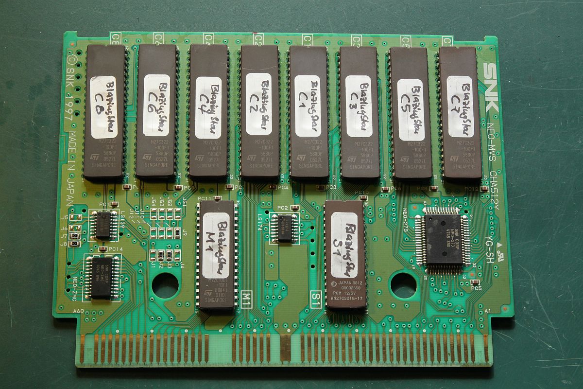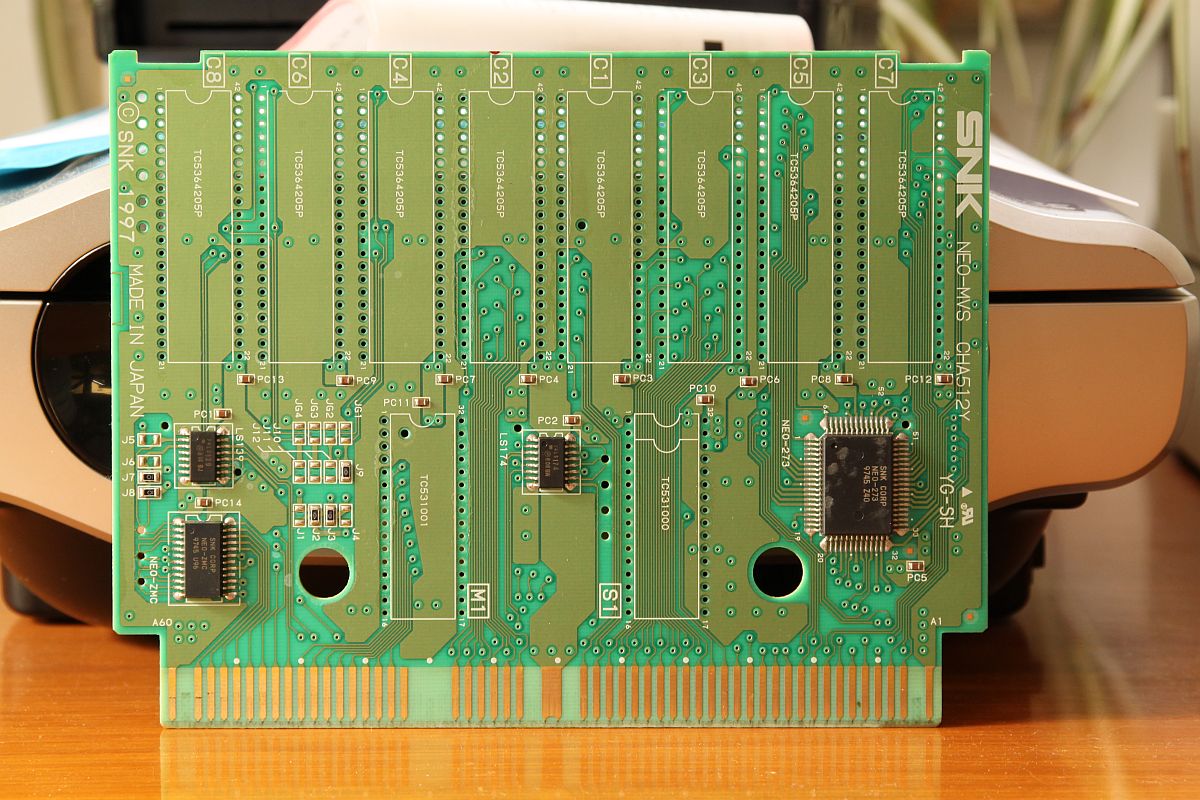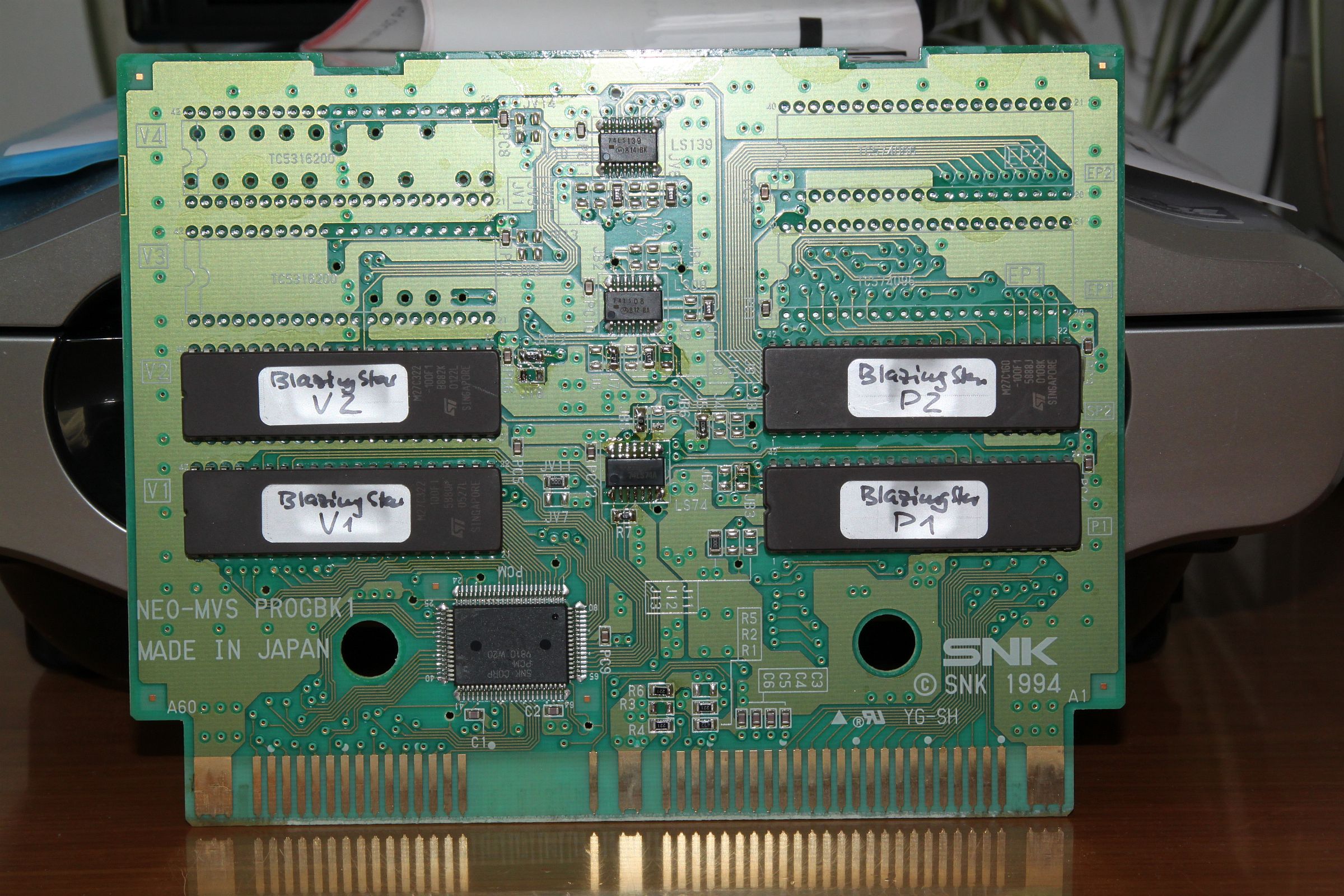 {NeoGeo Conversion Bericht} Schon lange wollte ich einige gute NeoGeo MVS Cartridges zum Spielen besitzen. Wer nicht Originale sammelt, der kann auch mit guten Conversions leben, dachte ich mir. Eine Conversion ist eine Original-Cartridge eines "Billigspiels", bei der die ROMs gegen die eines "guten" Spieles ausgetauscht wurden. NeoGeo-Cartridges bestehen aus zwei Platinen, eine PROG-PCB und eine CHAR-PCB. Von beiden Sorten gibt es mehrere Derivate, die unterschiedliche Speichergrößen, Memory-Banking-Mechanismen und sonstige Features aufweisen. Wenn man eine Cartridge konvertieren will, so muss man darauf achten, einen Spender mit den passenden Derivaten zu verwenden! (Hinweis: alle Bilder werden auf Klick hochauflösend!) {Links zum Thema NeoGeo Cartridges:} Die folgenden Links enthalten Inhalte, für die ich nicht verantwortlich bin, die aber gut zum Thema passen.