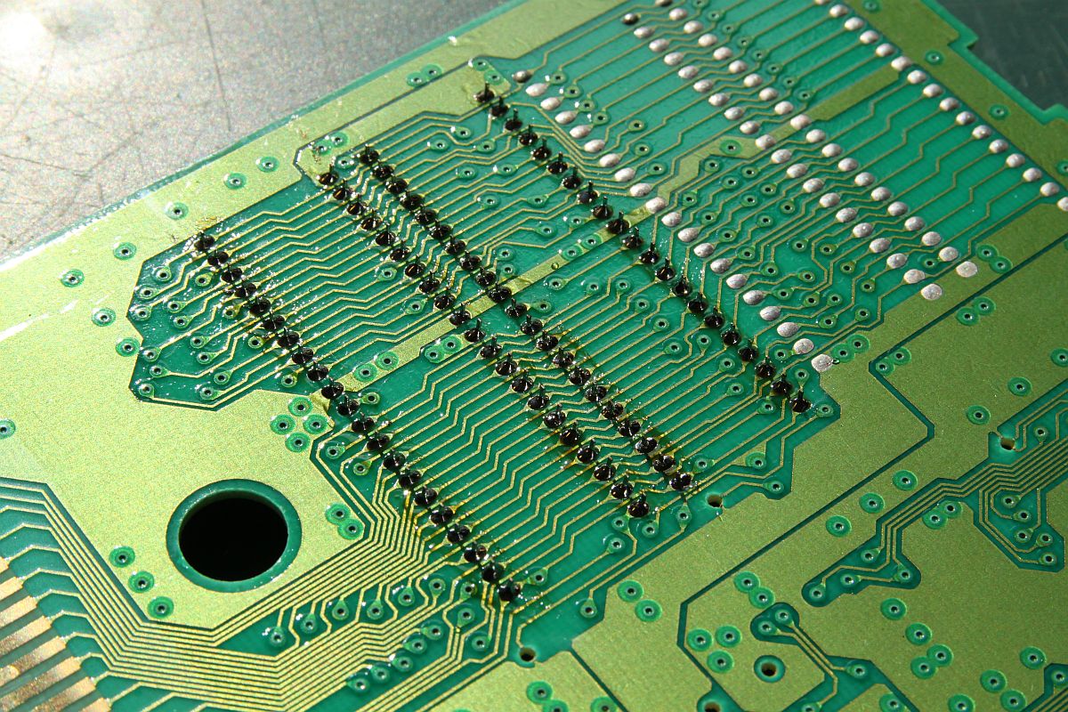 {Spieleauswahl} Was ich mir wünsche: Viewpoint, Pulstar, Blazing Star... Was ich billig bekommen habe: Metal Slug (keine Angst, die lass ich leben!), NeoGeo Cup98, Fatal Fury... Über die beiden Webseiten oben habe ich Erfolg: Blazing Star und Cup 98 haben die selben Platinensets, wenn auch mit etwas unterschiedlicher Bestückung: CHA512Y und PROGBK1. B-Ingo! ;-) Und das Originalspiel ist nicht so mein Ding: {Epromauswahl} Jetzt mal zum Vergleich die Originale von Blazing Star (Danke an mvs.gotwalls.com!): Und dann dachte ich, es könnte losgehen. Es fing so gut an, die Lager waren gefüllt: Doch was ist DAS? Korrosionsspuren im EPROM! {Vorübergehende Pause...} Kein Wunder, wenn das Ding nicht mehr richtig funktioniert! Hatte ich vorher noch nie. Beim Löschversuch ist übrigens das Fensterchen von innen (!) beschlagen! Und Fenster aufmachen zum Lüften ist hier glaub ich auch nicht hilfreich... {Eproms brennen} Lieferung ist da... einmal sehr günstig aus Bulgarien, war innerhalb von einer Woche da! Respekt! Und der Umtausch der defekten Charge... Ich bin gespannt. Nach gefühlten 60 Minuten Brennen... {Auslöten} Jetzt die Spendercartridge von den alten ROMs befreien. Das Entlöten gestaltet sich einfach, da die ROMs nur einseitig gelötet sind. Die Bohrungen sind nicht durchkontaktiert, eine gute (!) Entlötlitze reicht hier völlig aus. {Einlöten} Nun müssen die neuen ROMs an die richtigen Stellen, ebenso der fehlende 74LS74, ein 4k7 Widerstand und diverse Jumper. Die genauen Details sind den Fotos zu entnehmen, die auf Klick größer werden! Das Einlöten geht ähnlich fix, der Lötstopplack verhindert ungewollte Brücken. Der 74LS74 muss nachgerüstet werden, ebenso ein 4,7 kOhm Widerstand und diverse Brücken. Das letzte Foto zeigt den Stand mit den falschen 16-Bit-V-ROMs, der Sound funktioniert nur richtig mit 4 Stück 27C160! (Jumperstellung beachten!) {Einschalten...} Und das kommt raus, wenn man den Strom anmacht: {Fluchen...} Geil... aber... nein! :eek: Der Ton funktioniert nicht... Mist... Klingt wie ein alter kaputter Lautsprecher... Für die Samples sind die PROMs V1 und V2 zuständig. Ein Blick auf die Leiterplattenunterseite enthüllt Schreckliches: Die hochwertigen Datenleitungen sind nicht verbunden. Die originalen Proms arbeiten im Byte Mode... :-( 27C322 kann nur Word-Mode, weil er zu wenig Beinchen hat. Aber es gibt eine Lösung: bei 27C160 ist der Byte-Mode möglich, dafür braucht man halt vier Stück statt zwei 27C322. Und die Jumper müssen richtig gesetzt werden! Der "neue" 512Y: Der "neue" BK1 (ohne Samples): Und der "neue" BK1 (mit richtigen Samples und aufgeteilten 27C160): {Das Finale:} Und zum Schluss darf natürlich ein professionelles Label nicht fehlen, damit ich die Originale-Sammler so richtig über den Ebay-Tisch ziehen kann... {EPROM vs. PROM} Hier mal noch die Pinnings der eingesetzten (E)PROMs zur besseren Übersicht: |