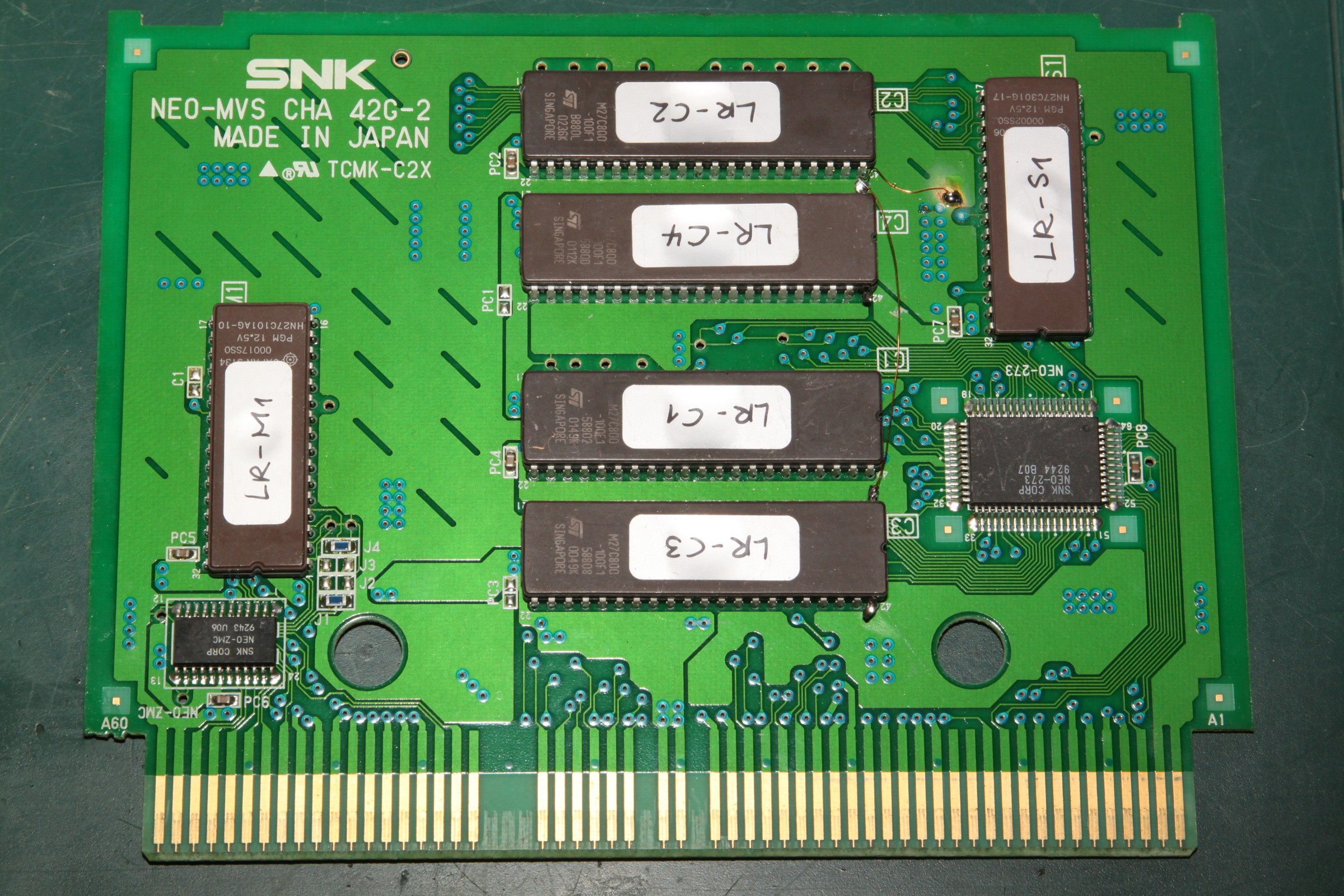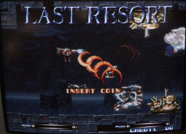 {Last Resort Conversion} Basierend auf CHA42G-2 und PROG42G-1 machte ich mich an die Conversion eines endgeilen Shooters im Irem R-Type Style. Ja, und weil ich keine kleinen EPROMs habe (27C400...), musste ich wieder Adressleitungen grounden...