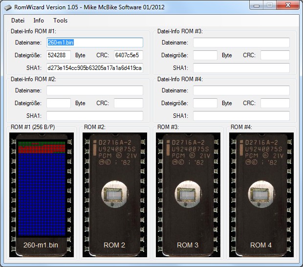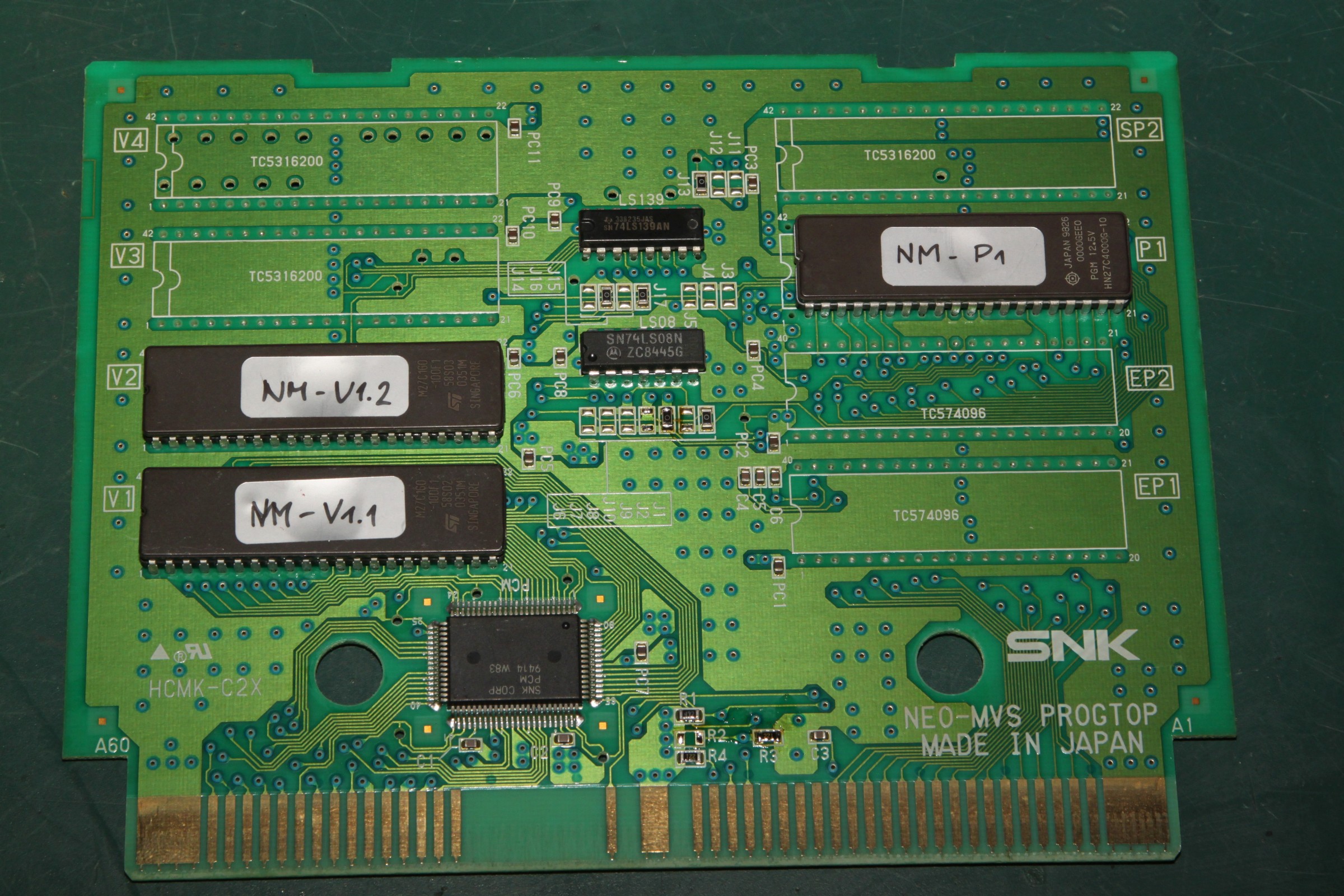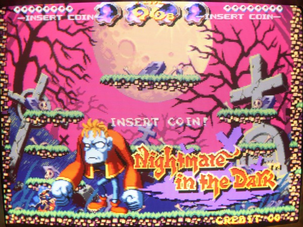 {Nightmare in the Dark Conversion} Blablabla... das Übliche halt... Interessiert langsam eh niemanden mehr... ;-) {Inbetriebnahme} Nach dem üblichen Splitten der Decrypted C-ROMs und der V-ROMs und einer auf Verdacht eingestellten Jumperung: der bange Moment der Wahrheit... Und geht auf Anhieb! Ich freu' mich. {Übrigens...} Ach ja, noch was: M1-ROM ist im ROM-Satz mit 512kByte angegeben, das ist im Original auch ein 512kByte MPROM... Was für eine Verschwendung: mein Analyse-Tool zeigt eine verschwenderische Anzahl von FF's, ein gewöhnliches 27C010 (128kByte) reicht völlig... |