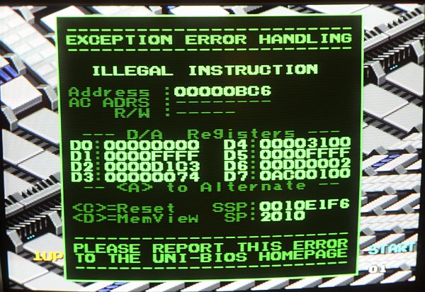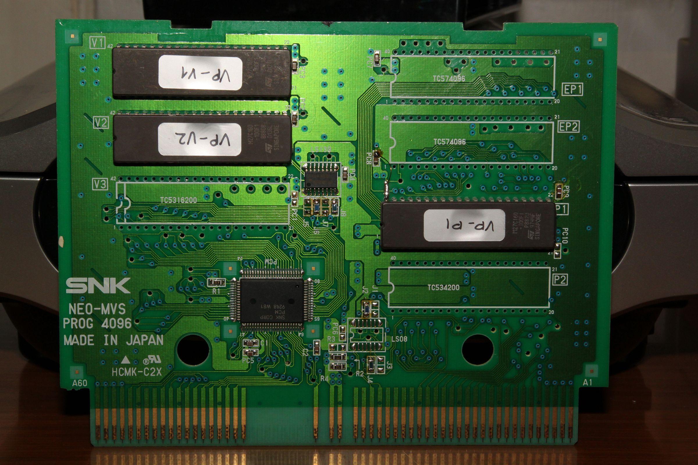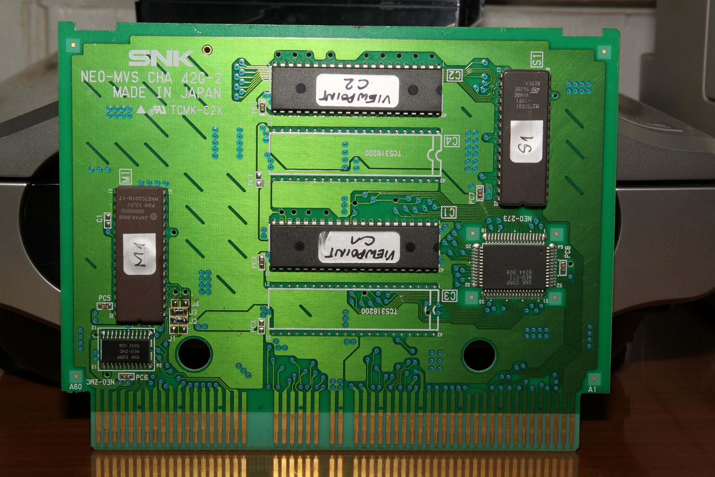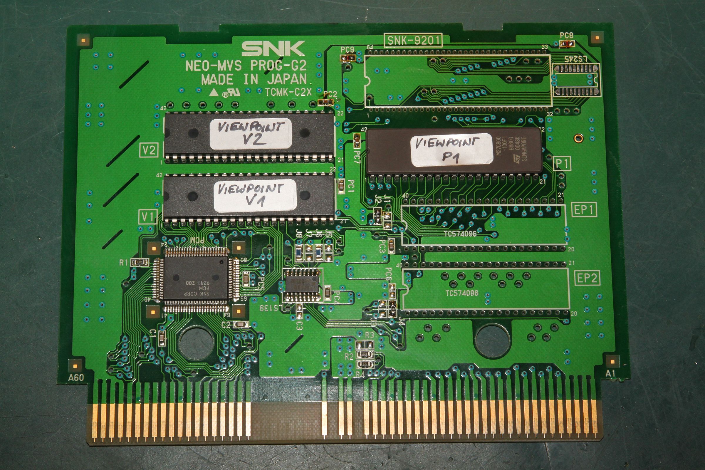 {Viewpoint Conversion} Ein tolles Spiel, zwar viel zu schwer, dafür aber mit einer Bombengrafik, bunt, superweiches Scrolling, coole Mucke... einfach perfekt. Viewpoint wollte ich schon immer besitzen. Basis für eine Viewpoint-Conversion sind PROG-G2 oder PROG-4096 und CHA-42G2. Die Programmierung und der Tausch der PROMs war erstmal problemlos, es sind ja auch nicht so viele, wie z.B. bei Pulstar... {Test 1} At first I was like... But then I... {Reparatur} Nee, oder? Langer Versuche - auch mit alternativen PROG-Boards kurzer Sinn: es lag an den 27C800... Man hatte mir offensichtlich einen Fake-Baustein angedreht, die Beschriftung war vollständig Aceton-löslich, was ich noch nie bei einem EPROM gesehen hatte. Und diese Bausteine halten wohl die Timing-Anforderungen nicht korrekt ein. Ein Fehler, den man unter Umständen lange suchen kann. Ich musste also für ausreichend Nachschub sorgen, aber 27C800 sind schwer zu bekommen. 27C160 dafür um so leichter und günstiger... {Viewpoint Conversion 2} Nachdem der Übeltäter gefunden war, musste nur noch der 27C160-Hack stattfinden: Die Conversion funktioniert anstandslos mit PROG-4096 und PROG-G2: |