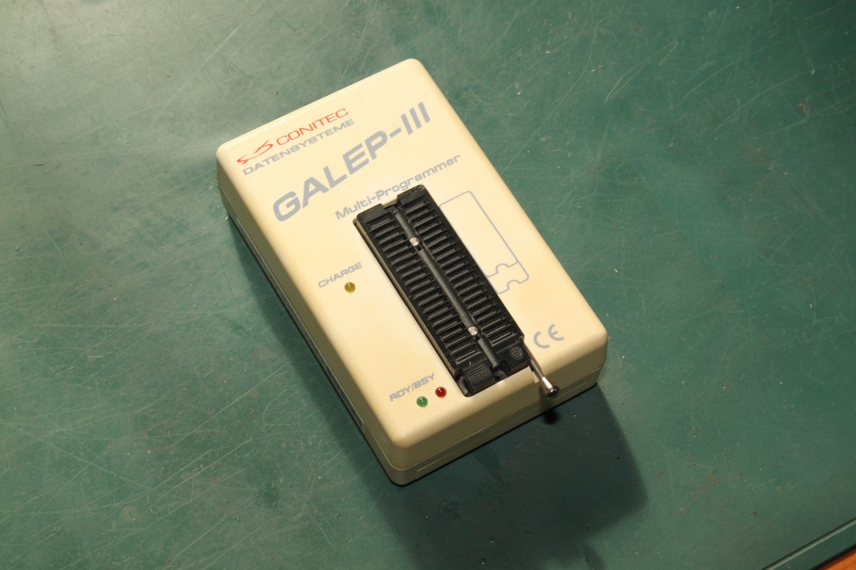{Galep III Programmer} Ich konnte mich nicht zurückhalten: ein günstiger (Dank an den Verkäufer!) Galep III mit Parallelkabel und Netzteil, sauber verarbeitet, verblüffend klein, und kann mit Basteladapter sogar 27C160 brennen! Ohne Adapter geht alles bis 40 Pins. Die Software vom deutschen (?) Hersteller Conitec wird heute noch auf den neuesten Stand gebracht und läuft sauber unter Windows XP. Leider hat der Kollege nur einen Parallelport. Was kein Nachteil ist, wenn man einen passenden Rechner besitzt. ;-) Die Fotos werden auf Mausklick groß!