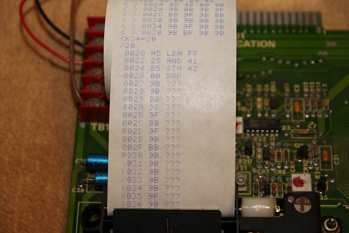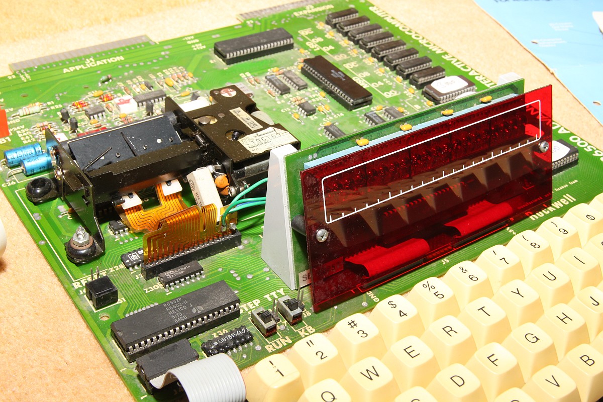 {Rockwell AIM-65 - Ein Traum wird wahr...} Da ja bekanntlich "Haben" das neue "Brauchen" ist, so wünschte ich mir schon seit Langem ein erschwingliches Exemplar eines Rockwell AIM-65. Dieses hier lockte mich in der Elektrobucht mit einem Sofortkauf-Angebot, (rauchige Stimme mit italienischem Akzent) welches ich nicht ablehnen konnte! Ja, Vernunft ist was Anderes... Das Paket lieferte mir eine AIM-65 Basisplatine mit Tastatur, Drucker, Netzteil und originaler Doku! Thermodrucker und Display... Bei der Tastatur fehlt ein wenig... Wer bitte kommt auf die Idee, die Leertaste sauber abzusägen und als kleine Extrataste auf der Seite zu fädeln? Immerhin sauber und gut gemacht - vielleicht war das damalige Gehäuse zu klein... Dafür volle EPROM-Bestückung mit Monitor, Basic und Assembler. Außerdem die volle, wahnsinnig üppige RAM-Ausstattung mit 4kByte. Vier. Kilo. Ich bin gespannt... Einschalten - der Drucker rattert - und funktioniert einwandfrei! Das Display - eine LED-Schönheit! Alleine der Satz Anzeigen kostet mittlerweile fast einen dreistelligen Betrag in Euro! Ohne Monitor muss halt alles (abschaltbar!) auf den Druckerstreifen! Da wird mir ganz warm um's Herz... Nebenbei: 60mm Thermodruckpapier heutiger Bauart funktioniert hervorragend mit diesem Drucker. Ich hab's ausprobiert. |