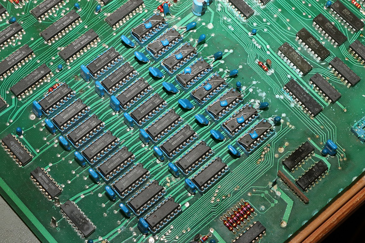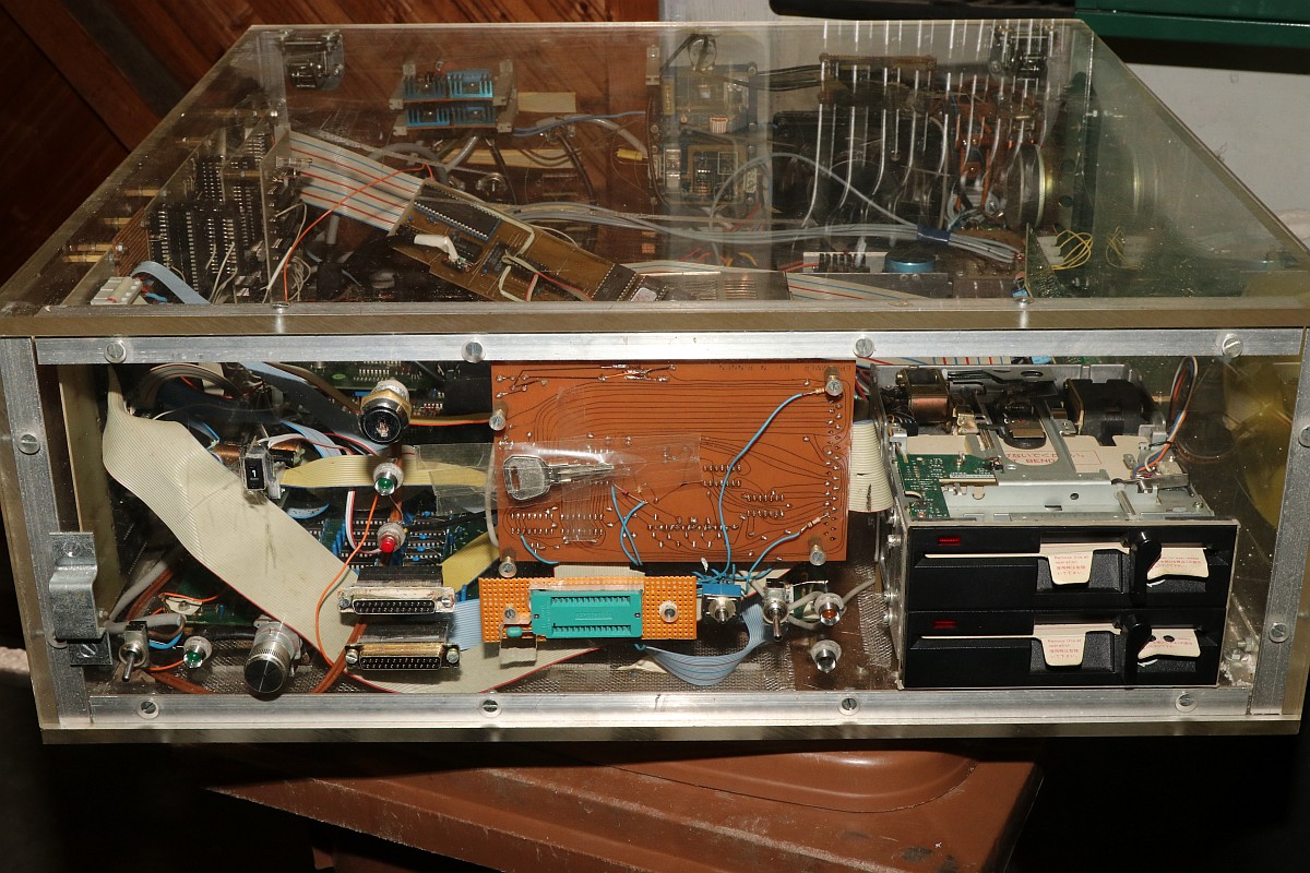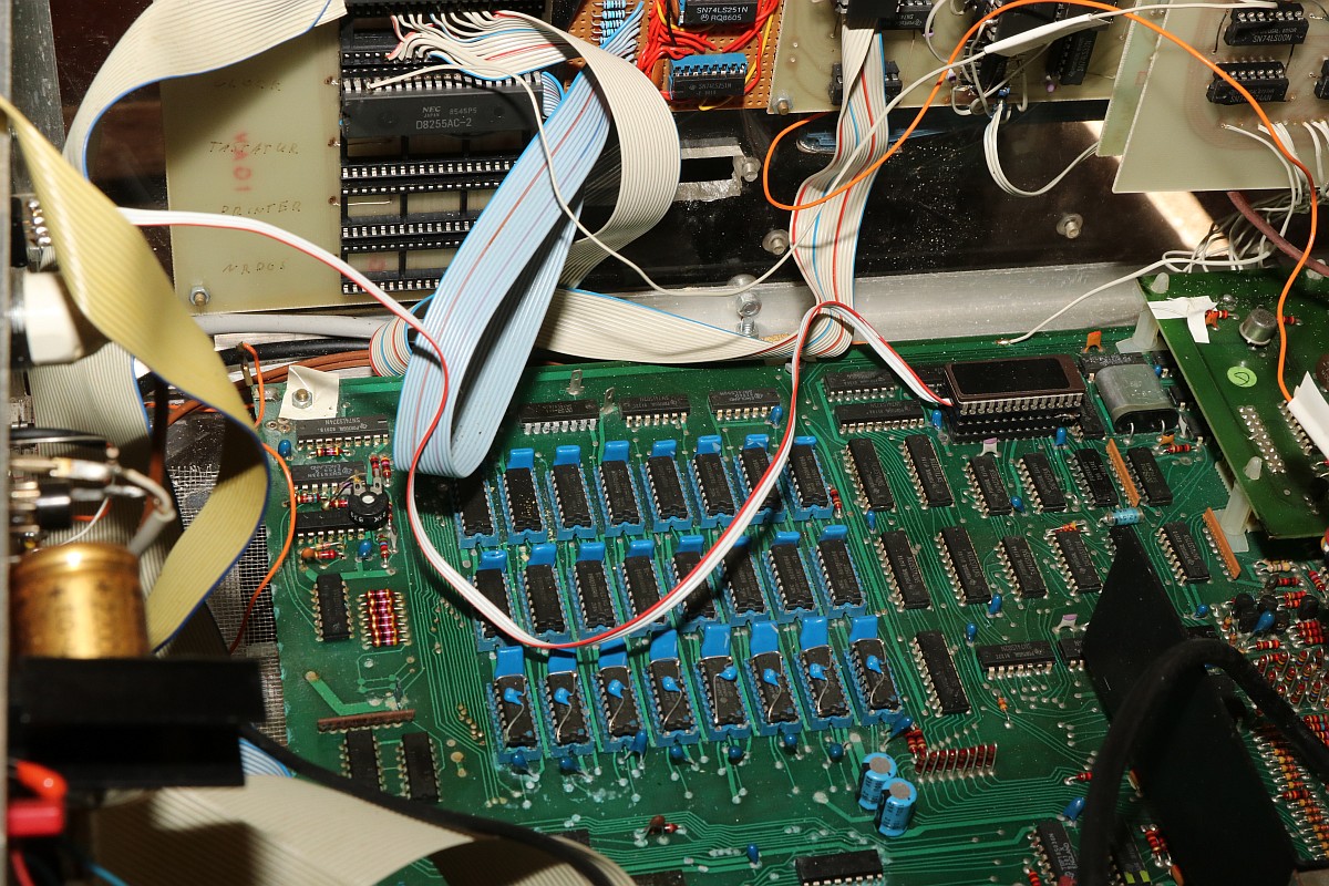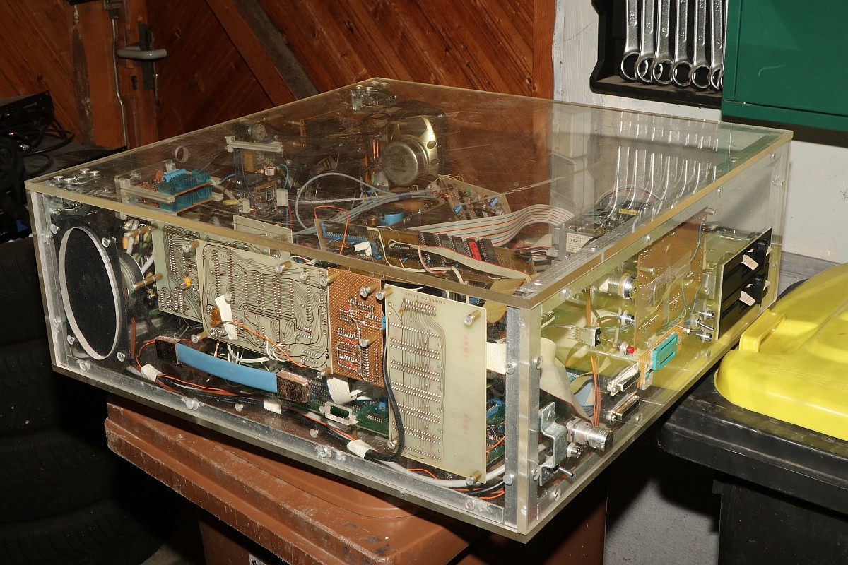 {DAI Computer - seiner Zeit voraus!} Vor Kurzem war mal im Altcomputerforum eine Diskussion, was denn passiert, wenn der schlimmste aller denkbaren Fälle einen Sammler ereilt. Unabhängig davon, dass dieser Fall womöglich für manche Angehörigen nicht "der schlimmste aller Fälle" sein könnte - was passiert mit dem Lebenswerk? Dieser Computer in seiner extremen Ausbaustufe ist so ein Fall, und - vielen herzlichen Dank, Martin!!! - er landete letztendlich in guten Händen, nämlich bei mir. ;-) Zwei 5 1/4 Zoll Disk-Laufwerke und ein EPROM-Programmer (oder Leser?) - klar, dass das alles nicht mehr in das originale Gehäuse passte... Schalter, Lampen, unbekannte Platinen mit unbekannter Funktion. Ich sollte mir mal die 1000 Seiten beiliegender Doku durchlesen... Später. Ein PAL-Modulator? Brachiale Stereo-Endstufe mit Lautsprecher-Zuschaltung und separatem Netzteil. Da geht was! Programm-ROMs ohne Ende... Zahllose RAMs und der Floppy-Controller ganz versteckt: Stacked RAM gab's also schon in den 80ern, nur größer - vong Volumen her. Die RGB-Karte - Original DAI! Ein ganz armer Steckverbinder... ...der unliebsame Bekanntschaft mit alten Batterien machen musste - wie übrigens auch das Baseboard. Eigentlich 48k DRAM... jetzt mit 256k Bausteinen bedient, dazu später. Die nicht mehr originalen Programm_ROMs: Dieses Kabel bedient das Character-ROM - Zeichensatzumschaltung... ...über Codierschalter: {Der Rückbau mit Schadensbeseitigung} Es gibt für mich keine erkennbare Chance, das gesamte Konglomerat in Betrieb zu nehmen. Ich habe mich entschieden, den seltenen Computer erst einmal grundlegend auf die Ursprungsversion umzubauen, Mainboard, RGB-Karte und Tastatur. Da die Original-ROMs gottseidank noch vorhanden sind, sollte mit dieser Strategie zumindest ein Computer mit Basic und Assembler möglich sein. So hat man den ja auch mal ursprünglich gekauft! Die diversen ROMs und der geniale arithmetische Floating-Point-Coprozessor hängen an der modifizierten Adressbusumschaltung... Diese Buchse hat diverse Steuersignale an diverse Umbauten geleitet und gehört nicht zum Originalboard... außerdem lag sie direkt unter den Batterien... Die Unterseite offenbart viele Umbauten... der Umbau der Dynamischen RAMs von 4116 (3 Versorgungsspannungen, heiß, fehleranfällig) auf 41265 (billig, zu groß aber egal, eine Spannung) ist gut und bleibt! Vorerst. Auch auf der Unterseite: schillernder Batteriesiff und Grünspan... Die Steuersignale kommen alle weg... ...und mit den Netzteilumbauten beschäftige ich mich später! {Endlich übersichtlich...} nach bald einer Stunde Demontage, Spüli, Wurzelbürste und Heißluftfön ertrahlt das Baseboard wieder in alter Schönheit: Das Baseboard noch ohne Program-ROMs und Character-ROM: Vielfältige Anschlussmöglichkeiten von hinten... Die Originaltastatur - in einem Teil des Original-Gehäuses: Kunstvoll verkleidet... ...und auf der Rückseite vom Mainboard gnadenlos abgesägt... Das wird das Minimalsystem sein, welches ich zuerst zum Leben erwecken will: Es ist noch viel zu tun, bis das erste Bild kommt. Erst mal muss ich die erweiterungsbedingten Umbauten alle zurückbauen. |