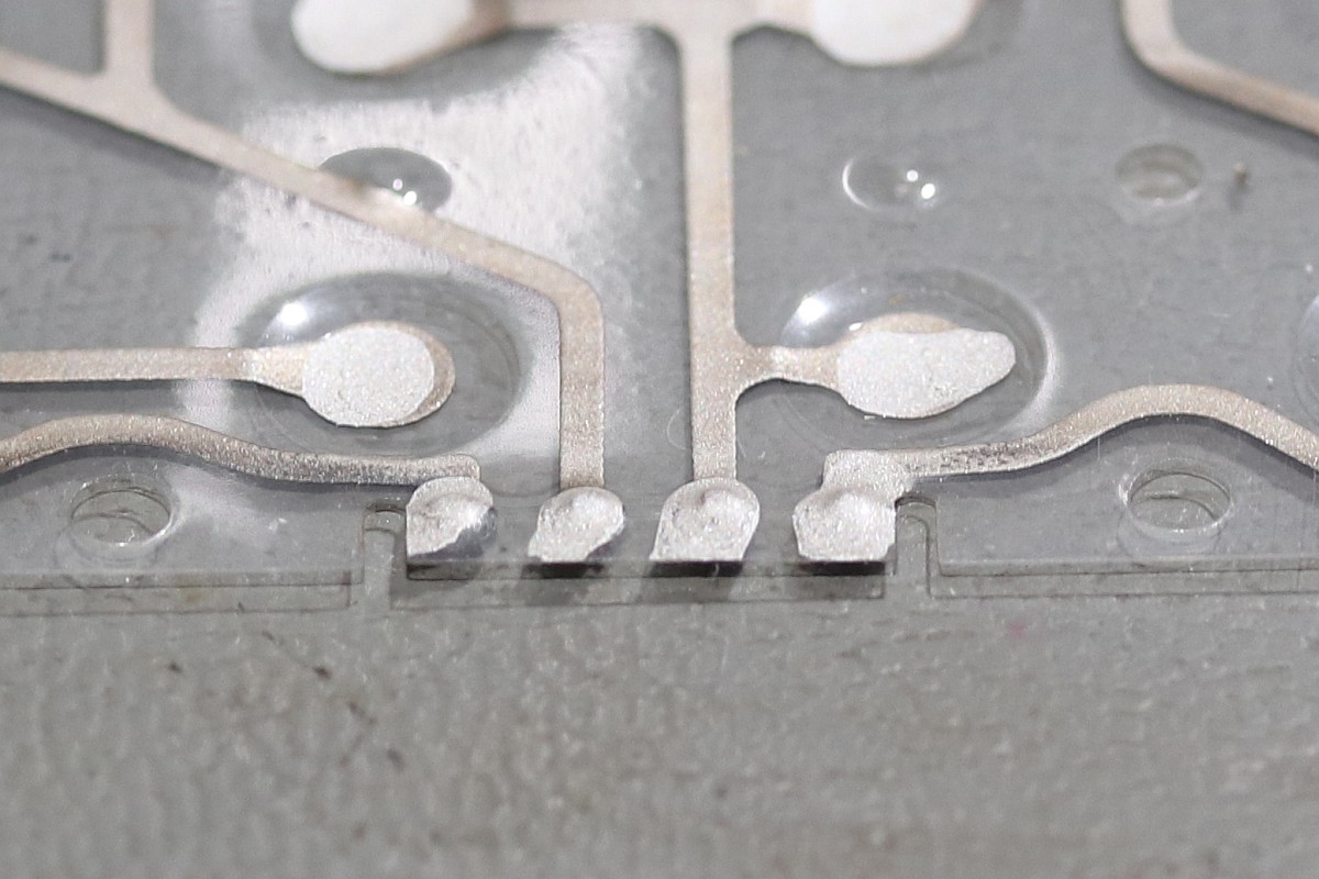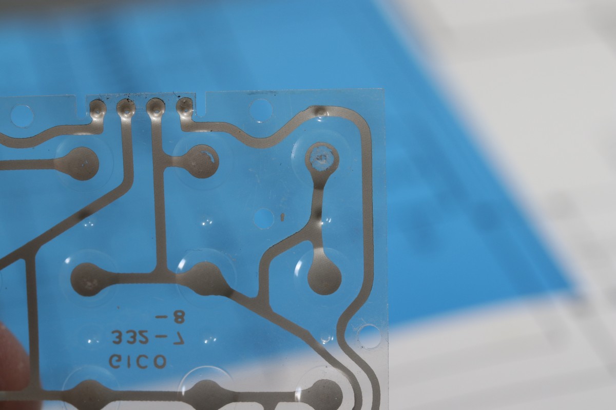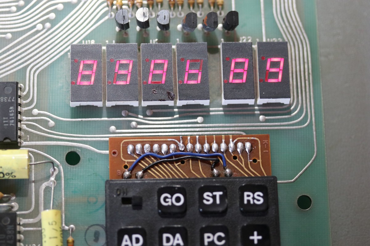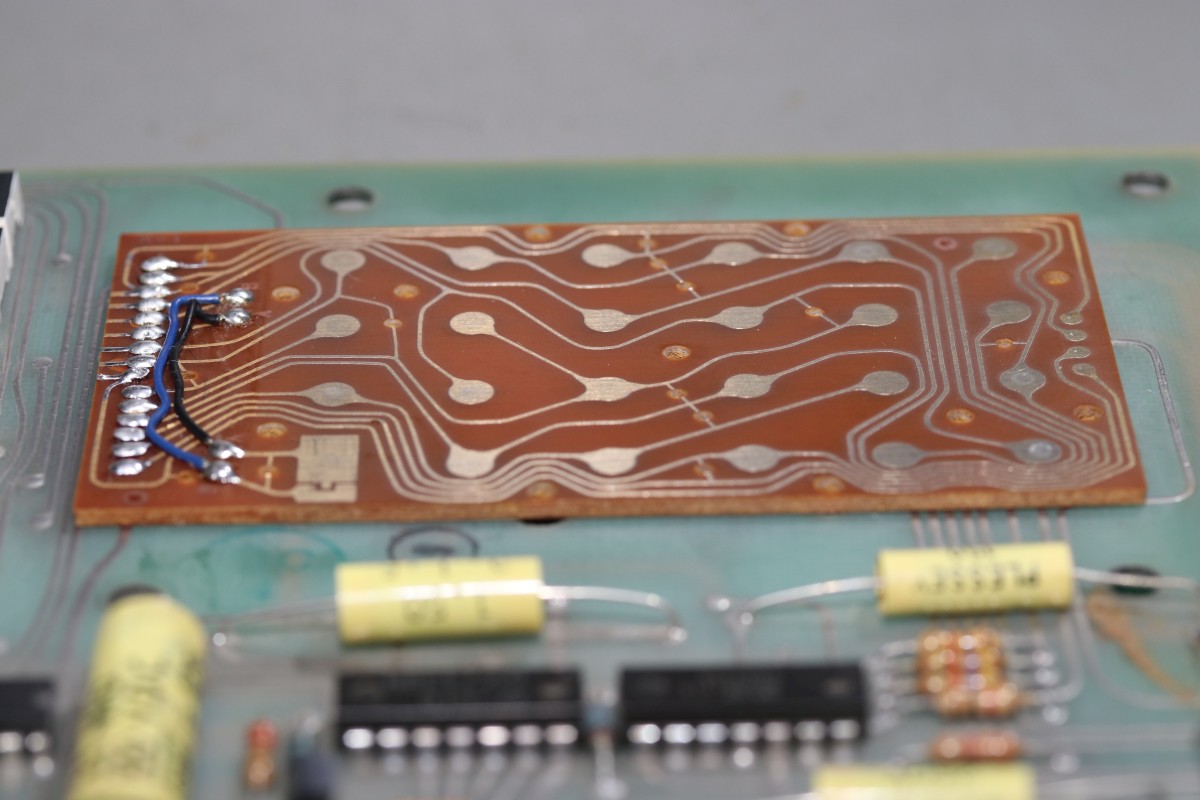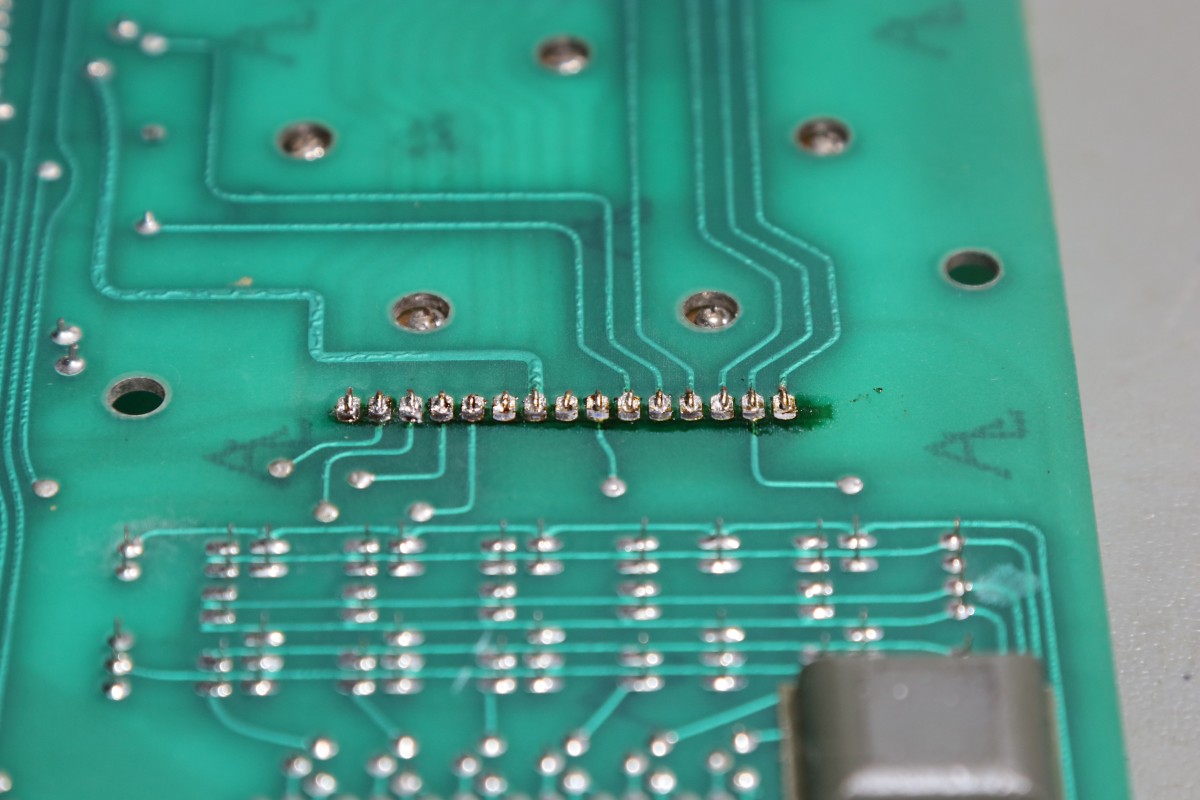 {Commodore KIM-1} Dank freundlicher Zeitgenossen, die meine Seite lesen und auch den Zerobrain Youtube-Kanal sehen, werden mir ab und an Schätze angeboten, zu denen ich einfach nicht Nein sagen kann... so auch dieser KIM-1, der als Commodore-Derivat sehr gut den Keramik-Original-KIM-1 ergänzt. Commodore hatte ja MOS gekauft und nach dem unerwarteten Erfolg des KIM-1 eine leicht veränderte Variante herausgebracht. "Leicht verändert" heißt wohl in diesem Zusammenhang alles ein wenig billiger und schlechter gemacht... kein Lötstopplack, schlechtere Tastatur... aber immerhin hat der 6502 keinen ROR-Bug mehr! Die Freude war groß, als der KIM beim Einschalten nach dem Reset sofort Zahlen anzeigte. Doch oh Schreck, nicht alle Tasten zeigten Wirkung... manche schlecht, die Reihe von 7-D gar nicht... Erst hatte ich den Decoder 74145 in Verdacht, doch der tat! (nicht erschrecken, das ist ein Open Collector-Typ, da kommen erst echte Pegel, wenn man eine Taaste drückt!) Dann den Portbaustein 6530 - das wäre Übel, weil es dafür keinen Ersatz gibt, doch auch dort pulsten alle Ausgänge brav! Blieb nur noch die Tastatur selber... Die Commodore-Variante: mit Plastik-ICS, dafür gesockelt! Die Tastatur ist mit fiesen Lötnägeln verlötet... sauber umgebogen, damit es richtig schwer wird. Die doppelseitige KIM-Platine bekommt man sauber und ohne Beschädigung frei... ...auf der billigen Pertinax-Tastaturplatine hingegen löst sich so manche Leiterbahn... Egal, das bekomme ich sauber wieder hin. Nach Zerlegen der Tastatur offenbart sich das ganze Unheil - auch die Tatsache, dass ich die Tastatur gar nicht hätte auslöten müssen... man lernt nie aus! Das Leitsilber auf der Folie ist korrodiert... ...oder gar ganz weggerubbelt - so kann das ja auch nicht mehr funktionieren... Immerhin kann ich die Platine wieder sauber einlöten und die Leiterbahnen flicken und polieren: Ein Fläschchen Silberleitlack habe ich bestellt und auch mal ein Handgalvanisierset... mal sehen, was sich damit retten lässt. Ich werde Euch auf dem Laufenden halten! {Tastaturreparatur} Also... Leitsilber ist mein bester Freund... Aber wenn so eine Packung schon mit Warnhinweisen gegen alles daherkommt, dann muss es ja gut sein! Mit beiliegendem Schwammstift ganz leicht tupfen - vorher natürlich gründlich mit Waschbenzin und Ohrstäbchen reinigen... Auf keinen Fall Aceton, sonst war's das mit der Folie und ihr habt Reinsilber an den Fingern... Ale Oxydationsreste sind verschwunden: Wichtig: superdünn auftragen! Ich denke, es hilft, dass noch Reste des Leitsilbers vorhanden sind... Es ist nicht schlimm, wenn das Silber mal über den Rand hinausgeht... Nach dem Trocknen (ca. 5min. und dem Zusammenbau funktionieren die Tasten besser denn je! Man muss nur ganz leicht drücken, schon werden die Ergebnisse prellfrei angezeigt! 0xA9... LDA... waren das Zeiten... Wie gut das langfristig halten wird, wird uns die Zeit zeigen - schlimmstenfalls muss man halt alle Jahre mal nachlackieren, aber es sieht gut aus! Ich werde vemutlich nicht mehr Megabytes an Hexcodes über diese Tastatur tippen... |
