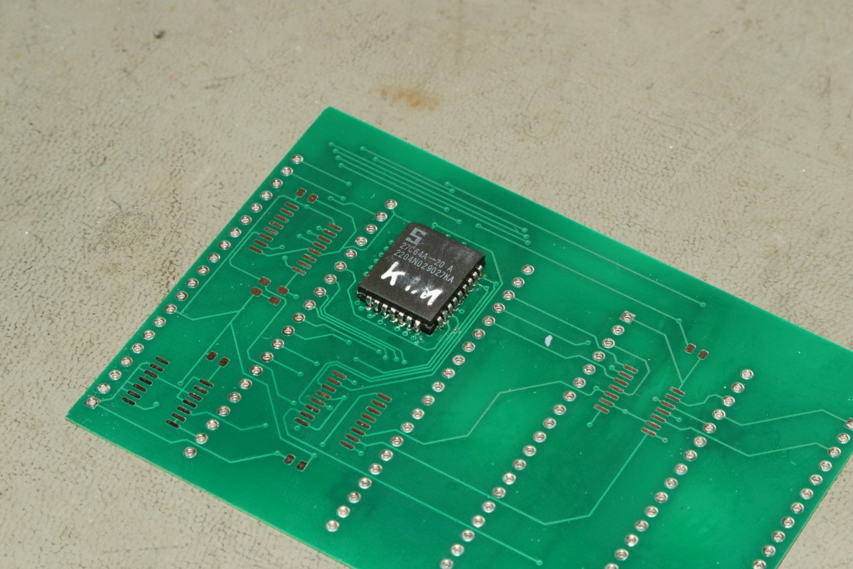 {KIM-1 Replica} Obwohl ich ja eigentlich nicht auf Replicas stehe, hat mich dieser Nachbau fasziniert: hier hat sich jemand die bewundernswerte Mühe gemacht, die originalen Maße und den Aufbau des legendären KIM-1 beizubehalten, dabei aber die nicht erhältlichen 6530 durch 6532 und ein Flash zu ersetzen! Die Platinen sind sauber layoutet, die Steckverbinder haben korrektes Maß. Die Tastatur stellt man aus Einzeltasten zusammen - nicht billig aber wenigstens noch erhältlich... Die Adapterplatine mit etwas Logik und dem Flash kommt auf die Unterseite und wird über die IC-Sockel mitverbunden. Der Entwickler hat mir das Flash gleich mitgeschickt.... Dank etwas korrodierter Beine war die Löterei nicht ganz so einfach. Die Bestückung ist überwiegend original KIM-1. Auch die alten 7-Segment-Anzeigen bekommt man noch. Ich habe auch noch einen großen Quarz gefunden! Über die Beschriftung der Tastatur hab ich lange nachgedacht. Letztendlich habe ich wasserlösliche Klebesymbole aus dem Modellbau gefunden: "Decals". Die werden kurz nass gemacht, schwimmen dann samt Klebefläche auf und können mittels eines Pinsels auf die gewünschte Stelle geschoben werden. Nach dem Trocknen sitzen sie dann bombenfest! Ich weiß nur nicht, wie die auf Fingerschweiß reagieren, vielleicht sollte ich sie noch mit Klarlack fixieren... Weiß auf Hellblau - kann man ja super fotografieren... Immer nur die benötigten Symbole werden ausgeschnitten und getränkt!. Ja, es ist nicht perfekt mittig - war mein erstes Mal! Aber ich finde, das sieht echt gut aus!. Für die Tasten mit zwei Buchstaben benötige ich kleinere Symbole... also wieder bestellen. {Es geht weiter!} Fast vollständig bestückt sieht die Platine schon mal ganz gut aus. Die gelben Kondensatoren sehen gut aus, sind aber unverschämt teuer... Die Decals auf den Tasten sehen gut aus, werden mich aber noch ärgern. Die Tochterplatine ist jetzt auch bestückt. Diese wird dann auf den überstehenden IC-Fassungspins aufgesetzt und verlötet. Passt... Und fertig. Leider tut der KIM beim Einschalten keinen Mucks. Takt und Datenbus zucken ordentlich, aber es gibt kein Bild... Stromaufnahme ist O.K. 1 MHZ stimmt auch... Fehler 1: die 6532 sind nicht funktionnal. Ich bestelle nie mehr in China. Fehler 2: ein RAM-tausch führt zu einer statischen 4 - da ist wohl ein RAM defekt. Gut, wenn man Ersatz da hat. Kaum ist alles richtig, schon tut's. Das RAM ist brav... Tastatureingaben funktionieren, alles läuft so, wie es sein soll. Ein BC327 tut es auch als Transistor für die Anzeigen - da braucht es keine USA-Typen! Ein schöner Clone - ich bin begeistert! Die China-ICs haben es nicht anders verdient: 450°C Heißluftfön und zwei Zangen lösen das Problem. Ach ja, die Decals halten nicht. Die Teile lassen sich einfach abkratzen, da muss ein Decklack her... Nagellack an der Kasse kaufen ist fast so peinlich wie Kondome... Sieht ganz ordentlich aus für's erste Mal. Man muss aber schnell machen, der Lack löst die weißen Buchstaben an... Und jetzt noch zu einem Detail... {IC-Forensik} Jetzt hat mich noch interessiert, was in den China-6532 eigentlich wirklich drin ist. Mein Stereomikroskop mit Handy reicht da irgendwie nicht mehr aus... Aber wozu habe ich denn eine 5Mpx USB-Kamera für mein Mikroskop? Oh... dann waren die Teile wohl einfach nur kaputt... |