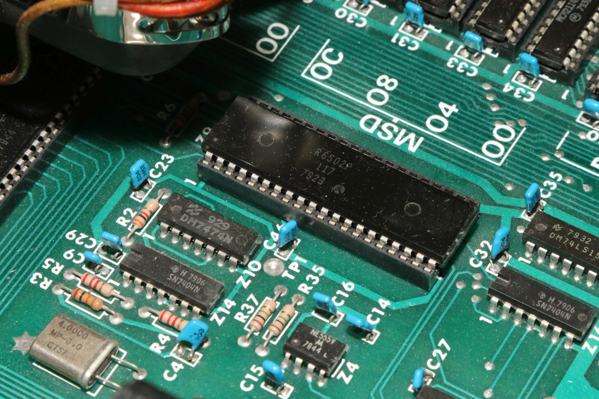 {Siemens PC-100} Ein Neuzugang in meiner Computerecke: der Siemens Computer... irgendwie kommt er einem ja bekannt vor... Ein schönes funktionales Gehäuse, sauber verarbeitet. Auf der Rückseite befinden sich Stromanschlüsse und die Buchsen für ein Cassettenlaufwerk. Als Beifang gab es eine einstellbare Speichererweiterung - allerdings ist die nicht alt, sondern brandneu... Optimal entwickelt für den Einbau - hier kollidiert nicht mal das Netzkabel! Der Rechner hat keinen Monitoranschluss und meldet sich brav auf einem hübschen LED-Display... Moment, das kennen wir doch!? Ist ja klar! Der Siemens PC-100 ist ein Rockwell AIM-65 mit leicht modifiziertem RAM, einem eigenen Gehäuse und Netzteil! Netzteil und Cassettenanschlüsse sind sauber integriert! Die Elkos sind schon mal sauber getauscht - ein perfektes Sammlerstück! Ich liebe diese Displays, sie verbreiten das warme Glimmen der Vergangenheit... Früher war alles... äh... dunkler! Die 6502 CPU. Meine Lieblings-CPU. Auch der Thermodrucker stammt original vom AIM, nur die mechanische Befestigung ist auf das Siemens-Gehäuse adaptiert. Alles, was ein Computer braucht: Im ROM-Bereich ist noch Platz für ein optionales ROM - oder eben für die Erweiterungsplatine, die dann hinten aufgesteckt wird. Der Rechner ist professionell verarbeitet und hat auch vielfach seinen Dienst in Firmen und Laboren getan, schon deswegen, weil selbst gebaute Hardwareerweiterungen problemlos angebaut werden konnten. |