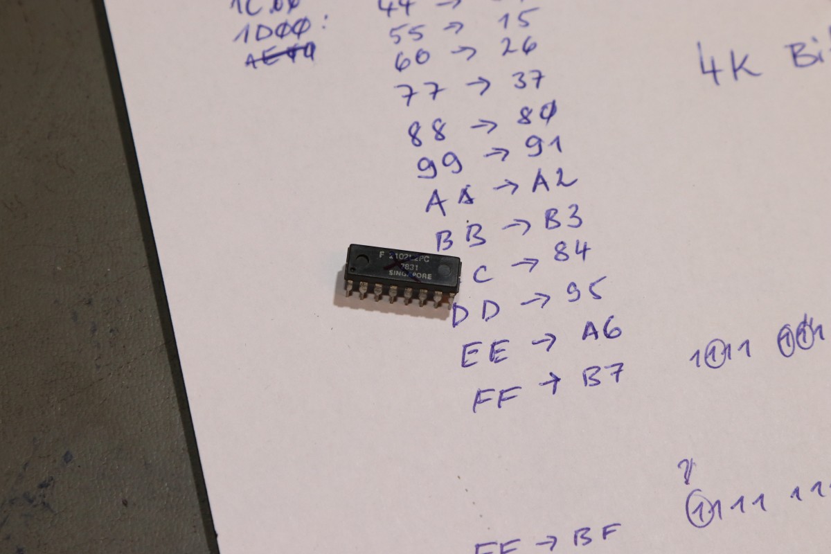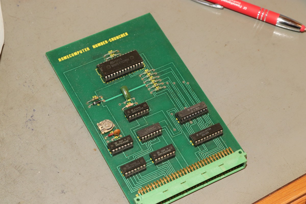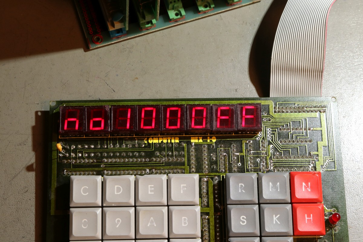 Aber weiter im Text! Als Nächstes ist die 4k-RAM-Karte dran. 32 Stück 2102 statische RAMs sorgen für schier unermesslichen Speicherplatz. Zumindest, wenn man sie in Hexadezimal über die Tastatur füttern muss... Und ja, Adresse 0x1000 lässt sich plötzlich einwandfrei beschreiben. Das System ist schon ganz schön gewachsen... Leider hat die Bank 3 (0x1c00 - 0x1FFF) einen Schuss... nicht alle Bits behalten ihren Inhalt. Das sollte durch gezielten RAM-Tausch zu beheben sein... Kommen wir zum "Number Cruncher". Ein single-Chip-Taschenrechner, der einen Microprozessor-Anschluss besitzt. Für die damalige Zeit ein genialer arithmetischer Coprozessor. Und tatsächlich: das Teil ist nichts anderes, als ein Microcontroller mit integriertem RAM und ROM, in dem ein Programm zum Ausführen von arithmetischen Funktionen werkelt. Die dazu benötigte SC/MP-Software befindet sich auf der zusätzlichen EPROM-Karte. Sie war laut Buch einst auf Cassette erhältlich und musste über einen Recorder auf das System geladen werden. Der Vorbesitzer hat uns das abgenommen und sowohl die Programmdatei, als auch einen Kopieralgorithmus mit auf dem EPROM untergebracht. Ein Programmstart bei 0xC000 kopiert das eigentliche Taschenrechnerprogramm nach 0x0C00 ins RAM und startet dann dort. Der "Bootloader" meldet sich brav... ...und schon kann man rechnen. Umgekehrt polnisch notiert und immer schön mit Mantisse und Exponent. Das erspart zumindest die Berechnung der Komma-Position... Zum Beispiel e hoch 1 - dauert nur wenige 100ms... ;-) Langsam begeistert mich dieses System - auch wenn das Anleitungsbuch von solch grottiger Qualität ist... Als nächste Herausforderung kommt noch der Metallpapierdrucker mit zugehöriger Karte und Software... ich bin gespannt! |