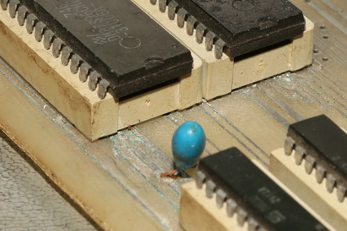 {SC/MP Christiani Board} Nicht nur Elektor und Homecomputer haben sich auf das SC/MP Thema gestürzt, auch der rennomierte Bildungsverlag Christiani hat seine eigene Variante eines SC/MP-Prozessorsystems herausgebracht. Dieses ist aber im Gegensatz zu den Mitbewerbern eher spärlich dokumentiert. Mir ist davon leider nur die CPU-Platine zugeflogen: Monitorprogramm, RAM und CPU sind auf einer einzigen Steckkarte untergebracht: Der Quarz beeindruckt durch seine Größe... So sieht das komplette System aus: Tastatur und Display befinden sich auf einer separaten Platine. Ebenso das Netzteil und ein Metallpapierdrucker... (Das Bild ist den Christiani-Unterlagen entnommen) Ich bin gespannt, ob ich die Karte zum Laufen bekomme! {Reparatur} Irgendjemand scheint mal Cola oder irgendein anderes ätzendes Material auf die Platine getropft zu haben... Da rosten sogar die Tantalbeinchen - das muss alles runter, sonst wird das in Zukunft nicht besser. Die Sockel sind sehr stabil und können wiederverwendet werden... Feine Edelstahlwolle erledigt den Rest, jetzt verrottet nichts weiter. So sieht das doch schon viel besser aus! Probehalber hab ich das System mal unter Spannung gesetzt - das Christiani-Teil gibt sich erfreulicher Weise mit 5V zufrieden! Der Taktgenerator geht... Der Datenbus läuft - es sieht gut aus! Viel Leistung für wenig Leistung... früher war eben doch nicht alles besser. Irgendwo muss der Strom hin - in diesem Fall sind es die MASK-ROMs. Ich habe mir jetzt mal ein hübsches Bubble-Display besorgt - vielleicht kann man da mit einfachen Mitteln ein komplettes System basteln. |