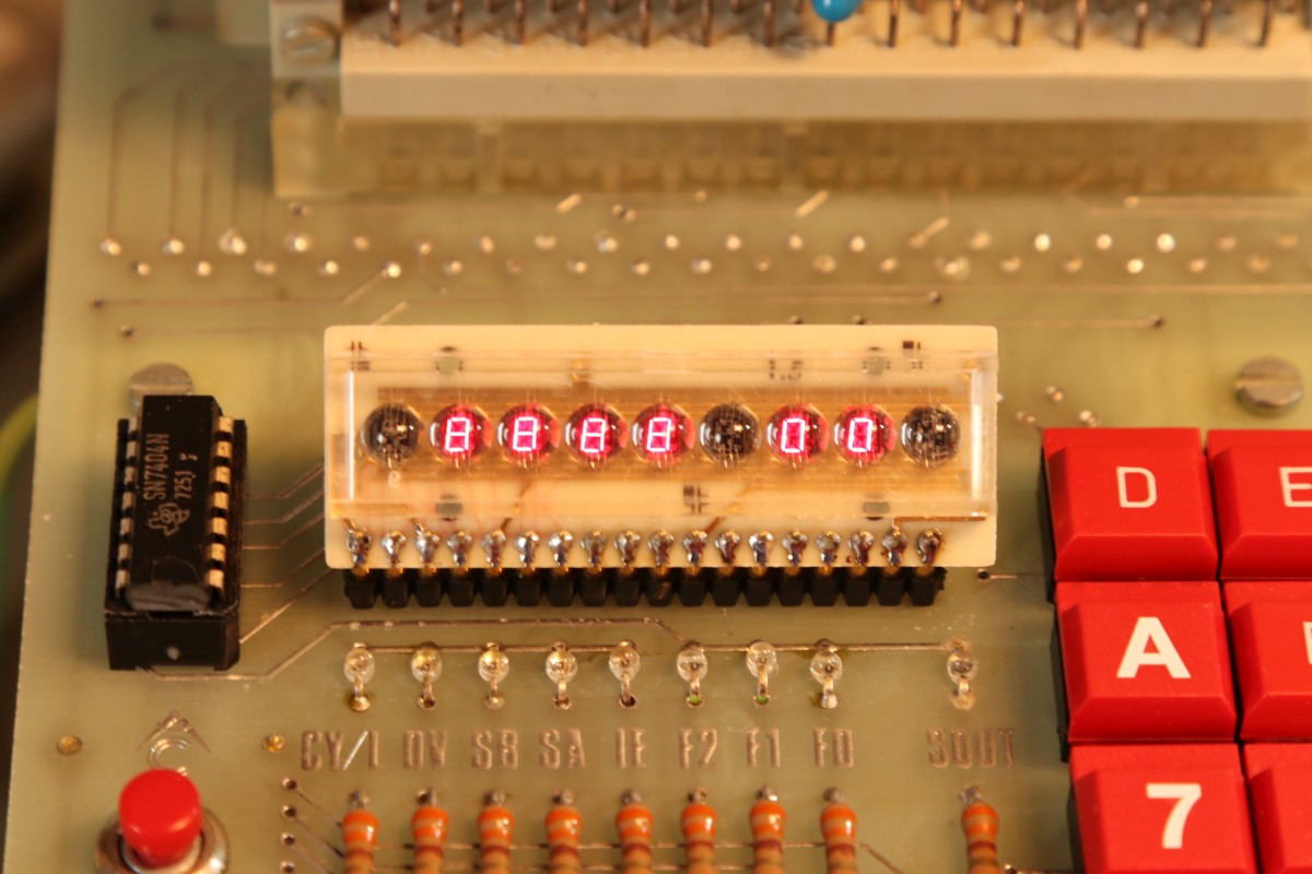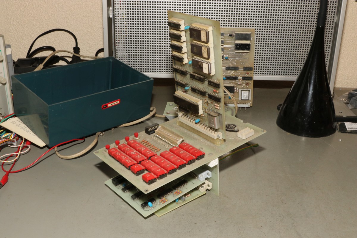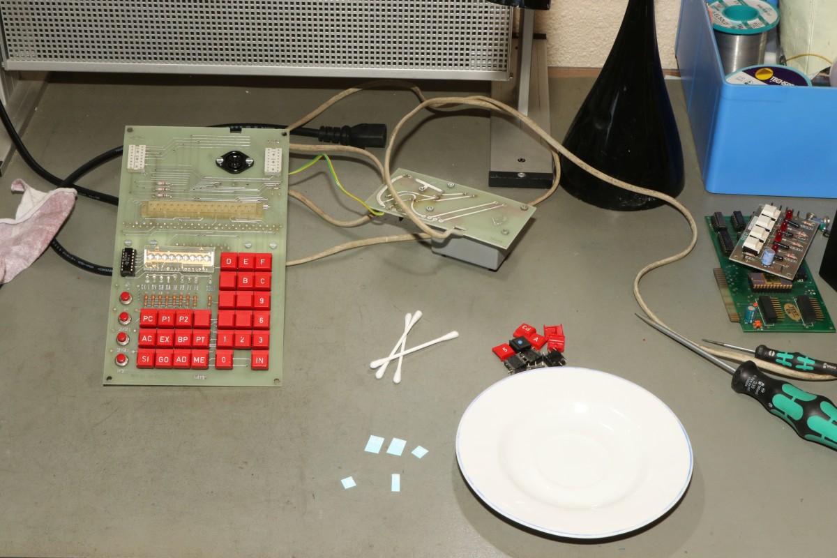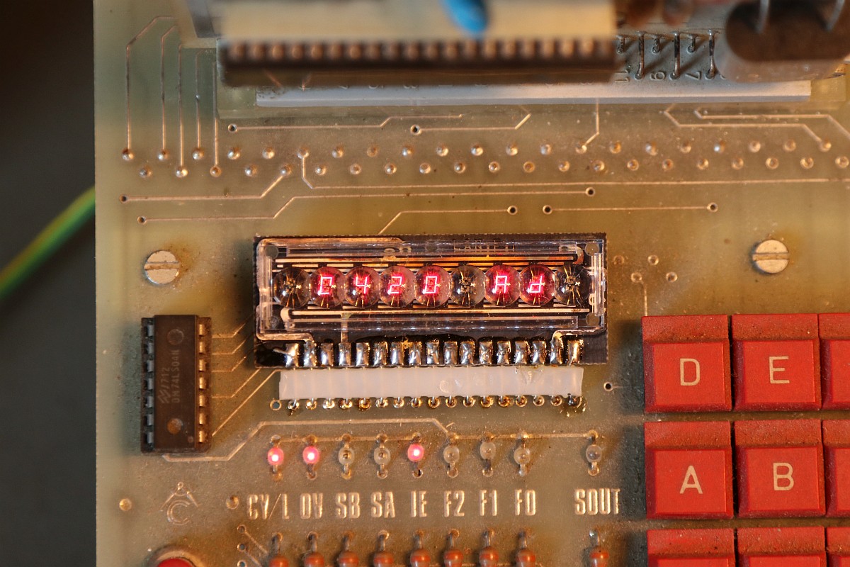 {Christiani SC/MP Komplettsystem} Über einen sehr freundlichen Kontakt ist mir endlich ein komplettes Christiani SC/MP System zugelaufen. Das habe ich mir schon lange gewünscht! Hier ist alles dabei, was man zum Betrieb braucht: Netzteil, CPU-Karte, Tastaturplatine und sogar ein Gehäuse... Die dicke Staubschicht verleiht dem Exponat einen ganz besonderen Retro-Charakter... RAMs und ROMs, wie wir sie schon (fast) von meiner separaten CPU-Platine kennen - Hier ist ein ROM mehr drauf, sollte das "P" womöglich auf zusätzliche Printer-Routinen hinweisen? Das Display ist eines dieser schönen Bubble-Displays - und äh... verstaubt. Und es fehlen Segmente... Die beiden CPU-Platinen sind fast gleich - zumindest sollte das eine Fehlersuche erleichtern.. So sieht die nackte Tastatur/Display-Platine aus.... Teko hat das Gehäuse hergestellt. Nicht schön, aber funktional. {Die inneren Werte} Langer Rede kurzer Sinn: der Computer funktioniert nicht. Auf dem Display fehlen Segmente und auf Tastendrucke gibt es keinerlei Reaktion. Der Christiani-Schaltplan ist ein Paradebeispiel, wie man es nicht macht. Mehrere Platinen sind auf verschiedenen Schaltplansegmenten verteilt, ICs sind nicht beschriftet... grausam. Heutzutage nennt man sowas "security by obscurity". Wir machen es so kompliziert, dass keiner mehr durchblickt. Einfach hingegen ist das Netzteil. Die überschaubare Leiterbahnführung erinnert mich an meine ersten Platinen mit diesem ätzresistenten Lackstift, der so herrlich gesund duftete. Aber das ist eine andere Geschichte.... Das ganze Konstrukt wird über eine Vielzahl an Steckverbindern und Drahtbrücken miteinander verbunden. Hier haben wir in hoher Auflösung die Cassettenrecorderplatine. Man konnte die gespeicherten Programme wohl auf Cassette abspeichern und wieder laden. Eine Doku dazu fehlt mir noch... Diese Platine hingegen bewerkstelligt den kompletten Adress-Decoder und bidirektionale Buspufferung. Warum das nicht direkt auf der Tastataturplatine war, erschließt sich mir nicht. Damit das ganze Machwerk auch miteinander funktionieren kann, gibt es diese Busplatine: Die führt dann über Kabel auch wieder zum Cassettenrecorderanschluss. Zur Tastatur/Display-Platine führen dann diverse Drahtbrücken. Ich bin ja der Meinung, das hätte man deutlich eleganter ausführen können. Vielleicht liest ja ein ehemaliger Christiani-Entwickler hier mit - auf ein Gespräch zum Thema würde ich mich sehr freuen! Diese Ansicht dient der Vollständigkeit, falls mal jemand die Verbindungen nachvollziehen will... Hier die rudimentäre Busplatine für Adresslogik und Cassettenkarte. {Displaytausch} Manchmal gibt es Zufälle... die fehlenden Segmente beim Bubble-Display habe ich für einen Defekt gehalten. Zufällig hat mir der Lieferant des Christiani-Systems auch einen defekten Taschenrechner mitgegeben, den ich mir mal näher angesehen habe... Er hat ein Bubble-Display (nicht staubig), das dem Christiani-Teil verblüffend ähnlich sieht. Die Taschenrechnerelektronik hat bereits den maximalen Cost-Reduction-Faktor erhalten. Ein IC muss genügen. Das Display geht noch, aber es gibt keine Reaktion auf Tastendrucke.... Das könnte daran liegen, dass die Knackfrösche bei diesem Produkt nur mit Klebeband an Position gehalten werden. Nach 40 Jahren klebt da nichts mehr und die Plättchen fliegen in der Gegend rum. Das ist nicht mehr reparabel und so dient der Rechner als Organspender. Das Taschenrechnerdisplay von hinten: Das Christiani-Display von hinten - sieht sehr ähnlich aus: Mit der Entlötpumpe sauber ausgelötet. Upps, das Taschenrechnerdisplay hat ein Pin zu wenig... Egal, wird schon nicht so wichtig sein. Und tatsächlich: es funktioniert! Bis auf die fehlenden Segmente. Dann lag es wohl doch nicht am Display. {Jetzt wird's logisch...} Folglich muss was an der Logik faul sein. Die CPU-Platine ist es nicht, ein Quertausch mit meiner zweiten CPU führt zum gleichen Verhalten - fehlende Segmente und keine Reaktion auf Tastendrucke. Auf der unteren Platine sind fiese bidirektionale Buffer drauf, die es kaum noch gibt: DS8834. In Griechenland gibt es noch ein paar... Raus... Rein... Manno, geht immer noch nicht... Diese Low-Pegel sehen nicht gut aus - da werde ich mal näher suchen müssen, wenn ich das unsägliche Christiani-Schaltbild verstanden habe. Never give up! Never surrender! {Manchmal sind es Kleinigkeiten...} Zum Beispiel selbstfabrizierte winzige Zinnbrücken... Und wenn man die dann entfernt, dann klappt's auch mit der Siebensegmentanzeige! Zumindest fast, weil dort nicht alle Segmente funktionieren.... Und dann kam, was kommen musste: mein Putzfimmel setzte ein. Die Exponate sollen so sauber wie möglich aussehen, dafür müssen sie dann auch schon mal Spüli und Bürste über sich ergehen lassen. Und danach mit dem temperaturgeregelten Heißluftfön schön trockenfönen... bei 150°C... Upps... Die empfindlichen Tastenkappen haben sich verzogen. Was für eine blöde Idee! Ein intensives Gefühl des Hasses auf mich selbst durchströmt mich kurzzeitig, dann sehe ich nach Ersatzmöglichkeiten. Die Shadow / ITT Digitast gibt es noch neu zu kaufen, aber leider nicht mehr mit der alten Mechanik. Neue Tasten haben jetzt Scharnierohren und sind nicht flach am Gehäuse eingeclipst... Ein freundlicher Forist aus dem Microcontrollerforum (ja, die gibt es dort auch!) hat Gottseidank sechs Stück alte rote Tasterkappen übrig. Die passen perfekt... Und sind dank der vom meinem KIM-1 Projekt übrigen Klebezahlen auch fix beschriftet! Ja, die Schriftgröße passt nicht zu 100%, so kann mich der Anblick aber immer zu zurückhaltenden Reinigungsmaßnahmen ermahnen! {Displayersatz} Ich hielt es für fast unmöglich, aber ein freundlicher Spender hatte noch einige Originaldisplays verfügbar. Alt aber ungebraucht. NSA 1198 - genau das richtige Teil! Diesem Teil habe ich glatt eine vergoldete Stiftleiste spendiert: Und alle Segmente funktionieren einwandfrei! Jetzt kann das Programmieren beginne