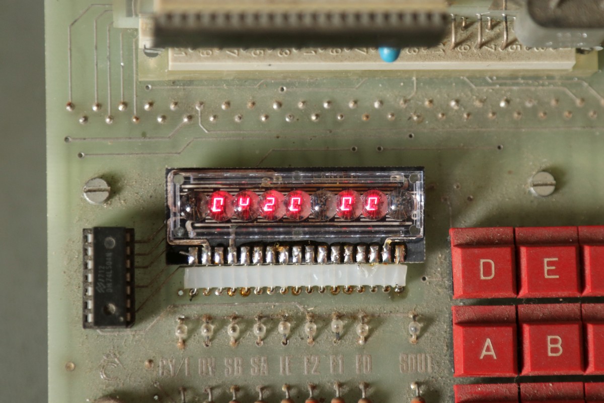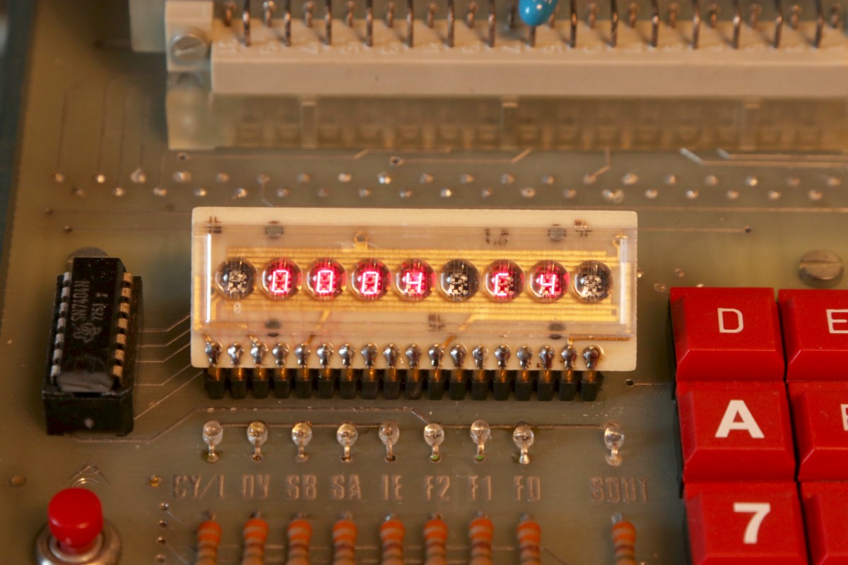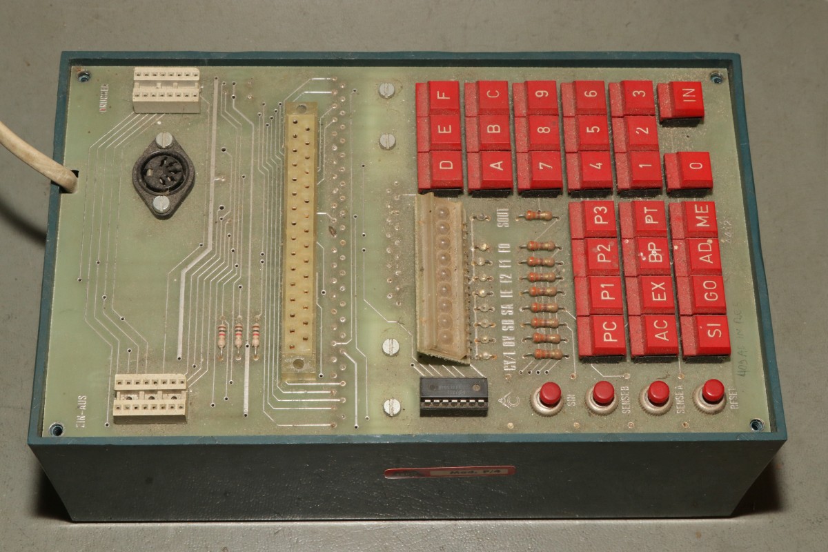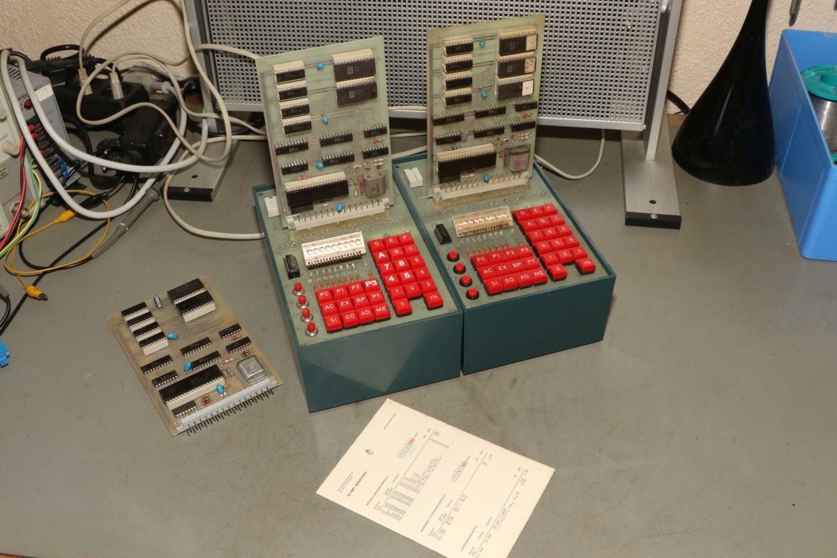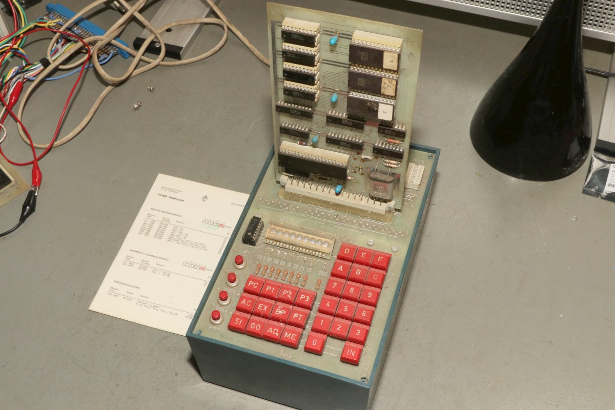 {Christiani SC/MP Komplettsystem} Über einen sehr freundlichen Kontakt ist mir endlich ein komplettes Christiani SC/MP System zugelaufen. Das habe ich mir schon lange gewünscht! Hier ist alles dabei, was man zum Betrieb braucht: Netzteil, CPU-Karte, Tastaturplatine und sogar ein Gehäuse... Die dicke Staubschicht verleiht dem Exponat einen ganz besonderen Retro-Charakter... RAMs und ROMs, wie wir sie schon (fast) von meiner separaten CPU-Platine kennen - Hier ist ein ROM mehr drauf, sollte das "P" womöglich auf zusätzliche Printer-Routinen hinweisen? Das Display ist eines dieser schönen Bubble-Displays - und äh... verstaubt. Und es fehlen Segmente... Die beiden CPU-Platinen sind fast gleich - zumindest sollte das eine Fehlersuche erleichtern.. So sieht die nackte Tastatur/Display-Platine aus.... Teko hat das Gehäuse hergestellt. Nicht schön, aber funktional. {Die inneren Werte} Langer Rede kurzer Sinn: der Computer funktioniert nicht. Auf dem Display fehlen Segmente und auf Tastendrucke gibt es keinerlei Reaktion. Der Christiani-Schaltplan ist ein Paradebeispiel, wie man es nicht macht. Mehrere Platinen sind auf verschiedenen Schaltplansegmenten verteilt, ICs sind nicht beschriftet... grausam. Heutzutage nennt man sowas "security by obscurity". Wir machen es so kompliziert, dass keiner mehr durchblickt. Einfach hingegen ist das Netzteil. Die überschaubare Leiterbahnführung erinnert mich an meine ersten Platinen mit diesem ätzresistenten Lackstift, der so herrlich gesund duftete. Aber das ist eine andere Geschichte.... Das ganze Konstrukt wird über eine Vielzahl an Steckverbindern und Drahtbrücken miteinander verbunden. Hier haben wir in hoher Auflösung die Cassettenrecorderplatine. Man konnte die gespeicherten Programme wohl auf Cassette abspeichern und wieder laden. Eine Doku dazu fehlt mir noch... Diese Platine hingegen bewerkstelligt den kompletten Adress-Decoder und bidirektionale Buspufferung. Warum das nicht direkt auf der Tastataturplatine war, erschließt sich mir nicht. Damit das ganze Machwerk auch miteinander funktionieren kann, gibt es diese Busplatine: Die führt dann über Kabel auch wieder zum Cassettenrecorderanschluss. Zur Tastatur/Display-Platine führen dann diverse Drahtbrücken. Ich bin ja der Meinung, das hätte man deutlich eleganter ausführen können. Vielleicht liest ja ein ehemaliger Christiani-Entwickler hier mit - auf ein Gespräch zum Thema würde ich mich sehr freuen! Diese Ansicht dient der Vollständigkeit, falls mal jemand die Verbindungen nachvollziehen will... Hier die rudimentäre Busplatine für Adresslogik und Cassettenkarte. {Displaytausch} Manchmal gibt es Zufälle... die fehlenden Segmente beim Bubble-Display habe ich für einen Defekt gehalten. Zufällig hat mir der Lieferant des Christiani-Systems auch einen defekten Taschenrechner mitgegeben, den ich mir mal näher angesehen habe... Er hat ein Bubble-Display (nicht staubig), das dem Christiani-Teil verblüffend ähnlich sieht. Die Taschenrechnerelektronik hat bereits den maximalen Cost-Reduction-Faktor erhalten. Ein IC muss genügen. Das Display geht noch, aber es gibt keine Reaktion auf Tastendrucke.... Das könnte daran liegen, dass die Knackfrösche bei diesem Produkt nur mit Klebeband an Position gehalten werden. Nach 40 Jahren klebt da nichts mehr und die Plättchen fliegen in der Gegend rum. Das ist nicht mehr reparabel und so dient der Rechner als Organspender. Das Taschenrechnerdisplay von hinten: Das Christiani-Display von hinten - sieht sehr ähnlich aus: Mit der Entlötpumpe sauber ausgelötet. Upps, das Taschenrechnerdisplay hat ein Pin zu wenig... Egal, wird schon nicht so wichtig sein. Und tatsächlich: es funktioniert! Bis auf die fehlenden Segmente. Dann lag es wohl doch nicht am Display. {Jetzt wird's logisch...} Folglich muss was an der Logik faul sein. Die CPU-Platine ist es nicht, ein Quertausch mit meiner zweiten CPU führt zum gleichen Verhalten - fehlende Segmente und keine Reaktion auf Tastendrucke. Auf der unteren Platine sind fiese bidirektionale Buffer drauf, die es kaum noch gibt: DS8834. In Griechenland gibt es noch ein paar... Raus... Rein... Manno, geht immer noch nicht... Diese Low-Pegel sehen nicht gut aus - da werde ich mal näher suchen müssen, wenn ich das unsägliche Christiani-Schaltbild verstanden habe. Never give up! Never surrender! {Manchmal sind es Kleinigkeiten...} Zum Beispiel selbstfabrizierte winzige Zinnbrücken... Und wenn man die dann entfernt, dann klappt's auch mit der Siebensegmentanzeige! Zumindest fast, weil dort nicht alle Segmente funktionieren.... Und dann kam, was kommen musste: mein Putzfimmel setzte ein. Die Exponate sollen so sauber wie möglich aussehen, dafür müssen sie dann auch schon mal Spüli und Bürste über sich ergehen lassen. Und danach mit dem temperaturgeregelten Heißluftfön schön trockenfönen... bei 150°C... Upps... Die empfindlichen Tastenkappen haben sich verzogen. Was für eine blöde Idee! Ein intensives Gefühl des Hasses auf mich selbst durchströmt mich kurzzeitig, dann sehe ich nach Ersatzmöglichkeiten. Die Shadow / ITT Digitast gibt es noch neu zu kaufen, aber leider nicht mehr mit der alten Mechanik. Neue Tasten haben jetzt Scharnierohren und sind nicht flach am Gehäuse eingeclipst... Ein freundlicher Forist aus dem Microcontrollerforum (ja, die gibt es dort auch!) hat Gottseidank sechs Stück alte rote Tasterkappen übrig. Die passen perfekt... Und sind dank der vom meinem KIM-1 Projekt übrigen Klebezahlen auch fix beschriftet! Ja, die Schriftgröße passt nicht zu 100%, so kann mich der Anblick aber immer zu zurückhaltenden Reinigungsmaßnahmen ermahnen! {Displayersatz} Ich hielt es für fast unmöglich, aber ein freundlicher Spender hatte noch einige Originaldisplays verfügbar. Alt aber ungebraucht. NSA 1198 - genau das richtige Teil! Diesem Teil habe ich glatt eine vergoldete Stiftleiste spendiert: Und alle Segmente funktionieren einwandfrei! Jetzt kann das Programmieren beginne