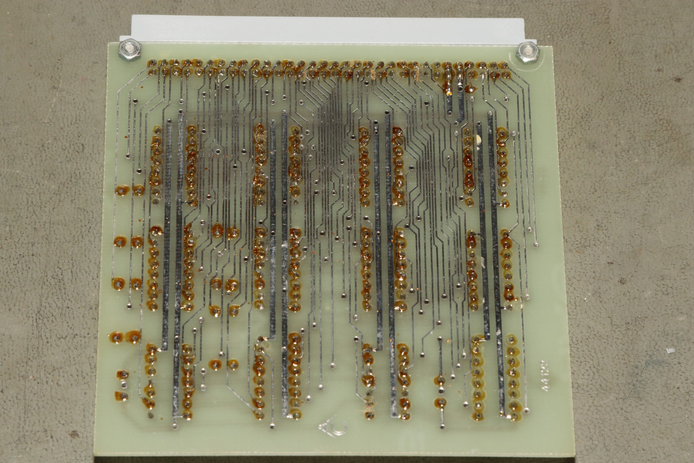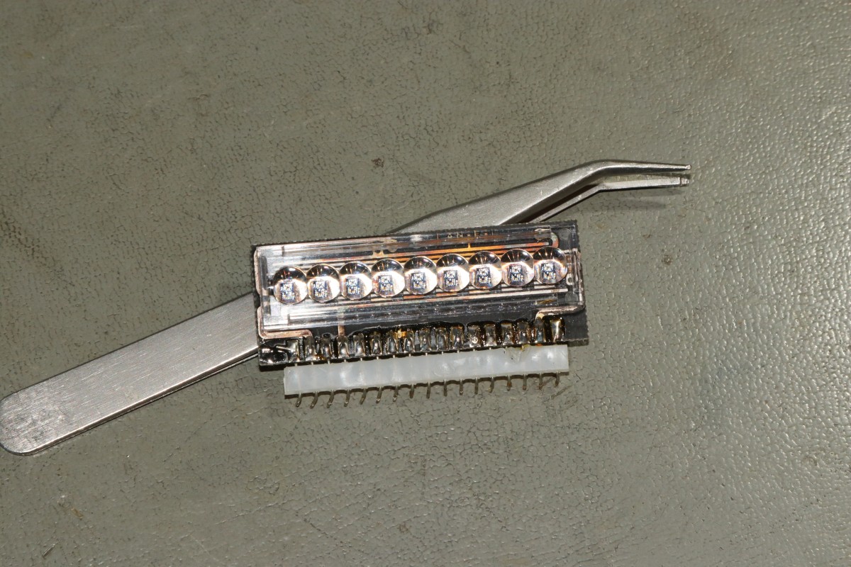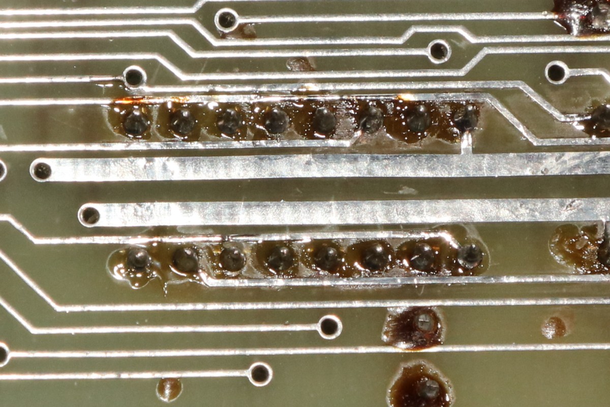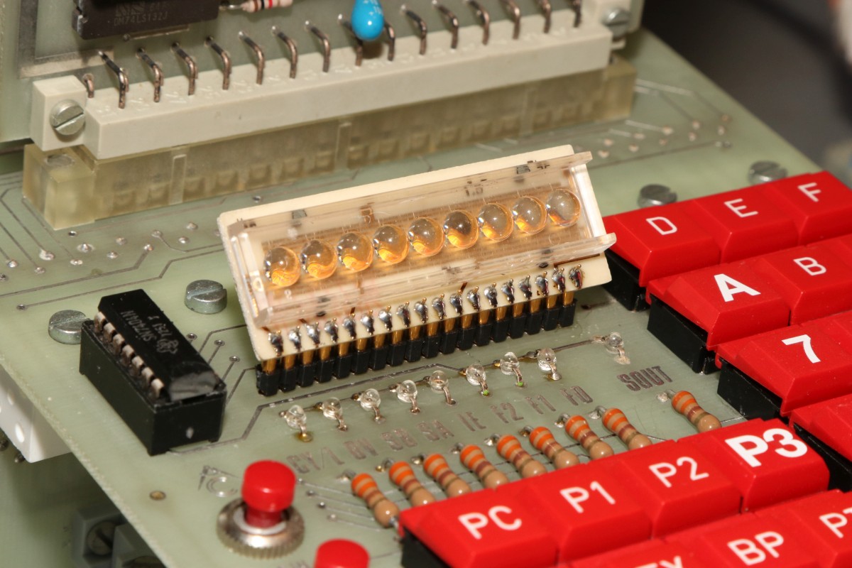 {Christiani SC/MP Komplettsystem} Über einen sehr freundlichen Kontakt ist mir endlich ein komplettes Christiani SC/MP System zugelaufen. Das habe ich mir schon lange gewünscht! Hier ist alles dabei, was man zum Betrieb braucht: Netzteil, CPU-Karte, Tastaturplatine und sogar ein Gehäuse... Die dicke Staubschicht verleiht dem Exponat einen ganz besonderen Retro-Charakter... RAMs und ROMs, wie wir sie schon (fast) von meiner separaten CPU-Platine kennen - Hier ist ein ROM mehr drauf, sollte das "P" womöglich auf zusätzliche Printer-Routinen hinweisen? Das Display ist eines dieser schönen Bubble-Displays - und äh... verstaubt. Und es fehlen Segmente... Die beiden CPU-Platinen sind fast gleich - zumindest sollte das eine Fehlersuche erleichtern.. So sieht die nackte Tastatur/Display-Platine aus.... Teko hat das Gehäuse hergestellt. Nicht schön, aber funktional. {Die inneren Werte} Langer Rede kurzer Sinn: der Computer funktioniert nicht. Auf dem Display fehlen Segmente und auf Tastendrucke gibt es keinerlei Reaktion. Der Christiani-Schaltplan ist ein Paradebeispiel, wie man es nicht macht. Mehrere Platinen sind auf verschiedenen Schaltplansegmenten verteilt, ICs sind nicht beschriftet... grausam. Heutzutage nennt man sowas "security by obscurity". Wir machen es so kompliziert, dass keiner mehr durchblickt. Einfach hingegen ist das Netzteil. Die überschaubare Leiterbahnführung erinnert mich an meine ersten Platinen mit diesem ätzresistenten Lackstift, der so herrlich gesund duftete. Aber das ist eine andere Geschichte.... Das ganze Konstrukt wird über eine Vielzahl an Steckverbindern und Drahtbrücken miteinander verbunden. Hier haben wir in hoher Auflösung die Cassettenrecorderplatine. Man konnte die gespeicherten Programme wohl auf Cassette abspeichern und wieder laden. Eine Doku dazu fehlt mir noch... Diese Platine hingegen bewerkstelligt den kompletten Adress-Decoder und bidirektionale Buspufferung. Warum das nicht direkt auf der Tastataturplatine war, erschließt sich mir nicht. Damit das ganze Machwerk auch miteinander funktionieren kann, gibt es diese Busplatine: Die führt dann über Kabel auch wieder zum Cassettenrecorderanschluss. Zur Tastatur/Display-Platine führen dann diverse Drahtbrücken. Ich bin ja der Meinung, das hätte man deutlich eleganter ausführen können. Vielleicht liest ja ein ehemaliger Christiani-Entwickler hier mit - auf ein Gespräch zum Thema würde ich mich sehr freuen! Diese Ansicht dient der Vollständigkeit, falls mal jemand die Verbindungen nachvollziehen will... Hier die rudimentäre Busplatine für Adresslogik und Cassettenkarte. {Displaytausch} Manchmal gibt es Zufälle... die fehlenden Segmente beim Bubble-Display habe ich für einen Defekt gehalten. Zufällig hat mir der Lieferant des Christiani-Systems auch einen defekten Taschenrechner mitgegeben, den ich mir mal näher angesehen habe... Er hat ein Bubble-Display (nicht staubig), das dem Christiani-Teil verblüffend ähnlich sieht. Die Taschenrechnerelektronik hat bereits den maximalen Cost-Reduction-Faktor erhalten. Ein IC muss genügen. Das Display geht noch, aber es gibt keine Reaktion auf Tastendrucke.... Das könnte daran liegen, dass die Knackfrösche bei diesem Produkt nur mit Klebeband an Position gehalten werden. Nach 40 Jahren klebt da nichts mehr und die Plättchen fliegen in der Gegend rum. Das ist nicht mehr reparabel und so dient der Rechner als Organspender. Das Taschenrechnerdisplay von hinten: Das Christiani-Display von hinten - sieht sehr ähnlich aus: Mit der Entlötpumpe sauber ausgelötet. Upps, das Taschenrechnerdisplay hat ein Pin zu wenig... Egal, wird schon nicht so wichtig sein. Und tatsächlich: es funktioniert! Bis auf die fehlenden Segmente. Dann lag es wohl doch nicht am Display. {Jetzt wird's logisch...} Folglich muss was an der Logik faul sein. Die CPU-Platine ist es nicht, ein Quertausch mit meiner zweiten CPU führt zum gleichen Verhalten - fehlende Segmente und keine Reaktion auf Tastendrucke. Auf der unteren Platine sind fiese bidirektionale Buffer drauf, die es kaum noch gibt: DS8834. In Griechenland gibt es noch ein paar... Raus... Rein... Manno, geht immer noch nicht... Diese Low-Pegel sehen nicht gut aus - da werde ich mal näher suchen müssen, wenn ich das unsägliche Christiani-Schaltbild verstanden habe. Never give up! Never surrender! {Manchmal sind es Kleinigkeiten...} Zum Beispiel selbstfabrizierte winzige Zinnbrücken... Und wenn man die dann entfernt, dann klappt's auch mit der Siebensegmentanzeige! Zumindest fast, weil dort nicht alle Segmente funktionieren.... Und dann kam, was kommen musste: mein Putzfimmel setzte ein. Die Exponate sollen so sauber wie möglich aussehen, dafür müssen sie dann auch schon mal Spüli und Bürste über sich ergehen lassen. Und danach mit dem temperaturgeregelten Heißluftfön schön trockenfönen... bei 150°C... Upps... Die empfindlichen Tastenkappen haben sich verzogen. Was für eine blöde Idee! Ein intensives Gefühl des Hasses auf mich selbst durchströmt mich kurzzeitig, dann sehe ich nach Ersatzmöglichkeiten. Die Shadow / ITT Digitast gibt es noch neu zu kaufen, aber leider nicht mehr mit der alten Mechanik. Neue Tasten haben jetzt Scharnierohren und sind nicht flach am Gehäuse eingeclipst... Ein freundlicher Forist aus dem Microcontrollerforum (ja, die gibt es dort auch!) hat Gottseidank sechs Stück alte rote Tasterkappen übrig. Die passen perfekt... Und sind dank der vom meinem KIM-1 Projekt übrigen Klebezahlen auch fix beschriftet! Ja, die Schriftgröße passt nicht zu 100%, so kann mich der Anblick aber immer zu zurückhaltenden Reinigungsmaßnahmen ermahnen! {Displayersatz} Ich hielt es für fast unmöglich, aber ein freundlicher Spender hatte noch einige Originaldisplays verfügbar. Alt aber ungebraucht. NSA 1198 - genau das richtige Teil! Diesem Teil habe ich glatt eine vergoldete Stiftleiste spendiert: Und alle Segmente funktionieren einwandfrei! Jetzt kann das Programmieren beginne