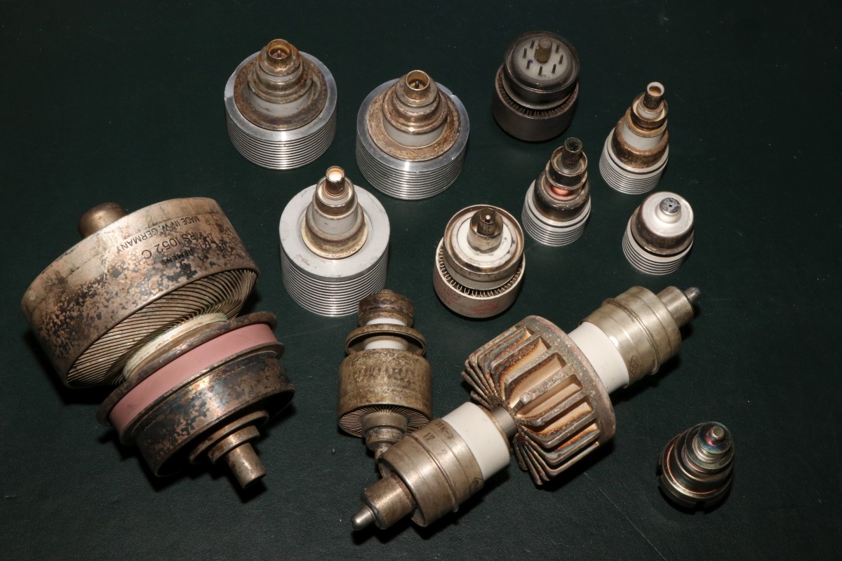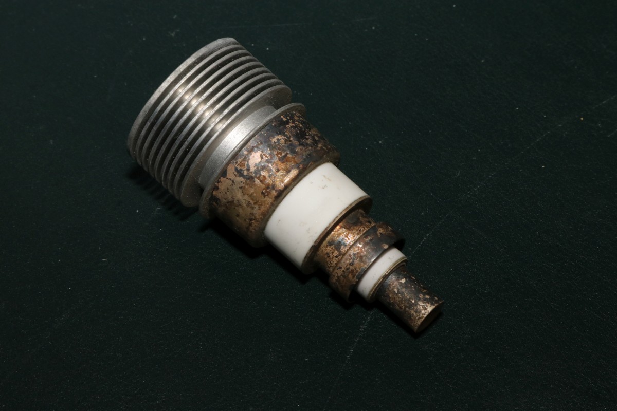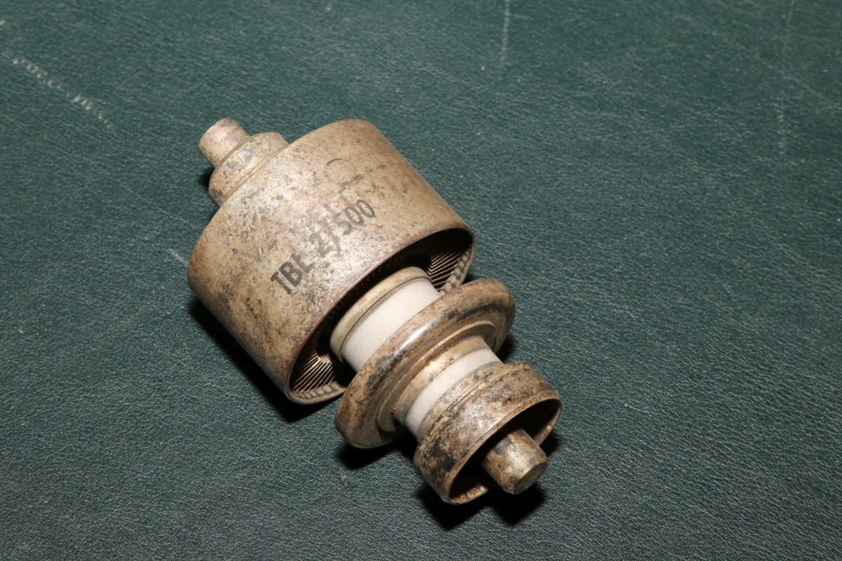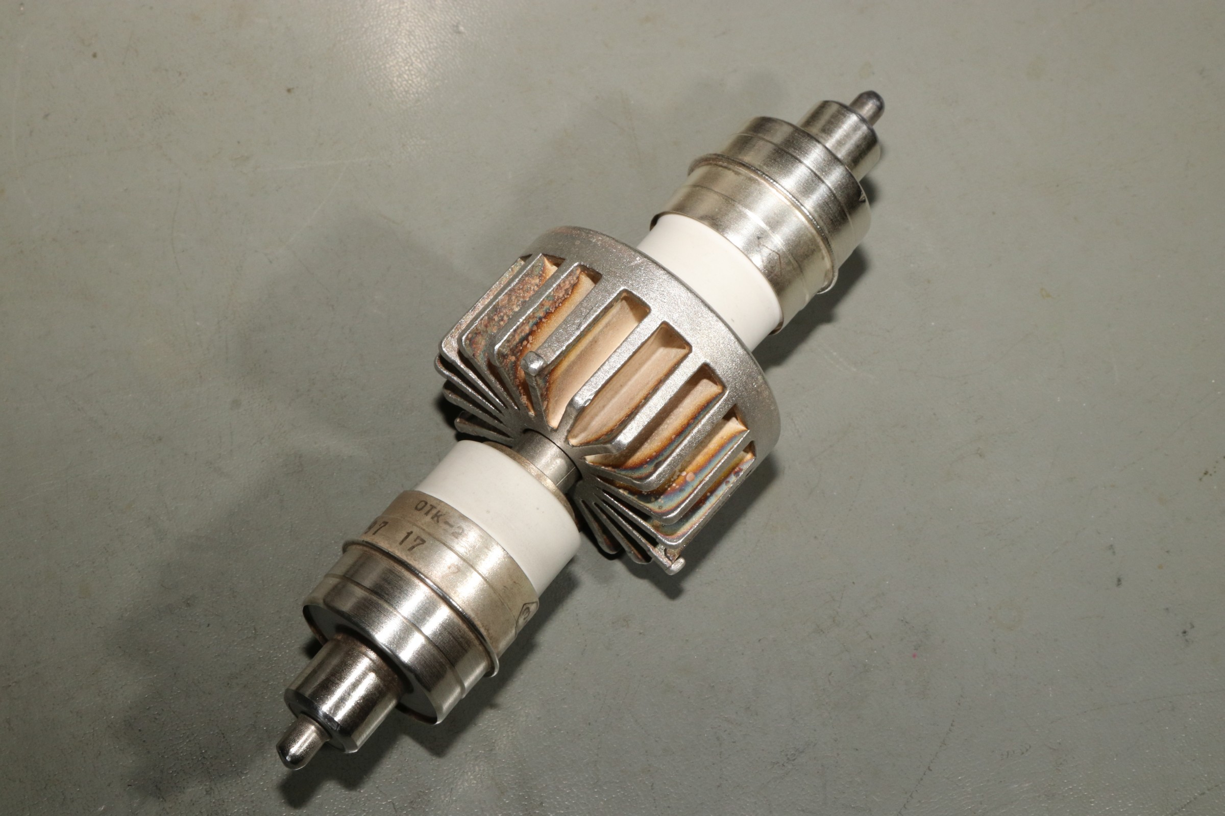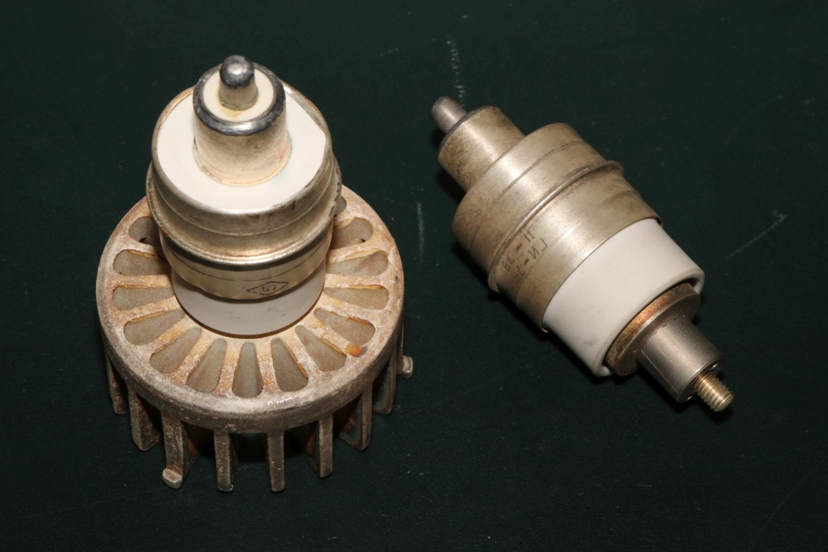 {Scheibentrioden von klein bis groß} Hier mal ein kurzer Ausflug zum Thema Scheibentrioden. Die machen als Hobby zwar wenig Sinn, haben dafür mit 1000V, mehreren KW und über 1GHz keine Probleme... Je nach Bauform. HF brachial! Ich bekam wieder Post von der Elektrobucht... Darin allerlei Röhriges - zum Beispiel diese russische Triode: Die sich bei näherem Hinsehen tatsächlich als zwei gegeneinander verschraubte Trioden entpuppt! Gegentaktstufe... und hier RS1052C - ein Klopper von Siemens, 1,5kg, Heizstrom 80A... dafür 790MHz, 3,3kV, 1,5A... - braucht man täglich... Hie ein 3GHz Triödchen der kleinen Bauform: 2C40A Eine YD1270: 4CX250M: TBL2/500 Und die Wald- und Wiesen-Triode 2C39A von verschiedenen Herstellern: Die gab es mit Glas- und mit Keramikisolierung... Hier noch eine kleine Scheibentriode unbekannten Typs, irgendwie erinnern mich die Kühlkörper immer an die Triebwerke aus Star-Wars... Eine TH316 - 270W Anodenleistung... Ja, es sind schon einige hübsche Exponate - vermutlich nicht mehr so gut, aber dafür hübsch anzusehen! Hier ist nur noch die Anode übrig - das verleitet mich zu einem Zerlegeexperiment im nächsten Beitrag! Und wenn man die Teile etwas putzt, dann sehen sie noch hübscher aus - Tube-Porn! Ein paar der nächsten Fotos sind sehr hoch auflösend - auf Mausklick! Ja, das ist keine Scheibentriode, aber eine brachiale Diode! Lag nur auch gerade so rum. 25kV Sperrspannung, 6A Dauerstrom... |
