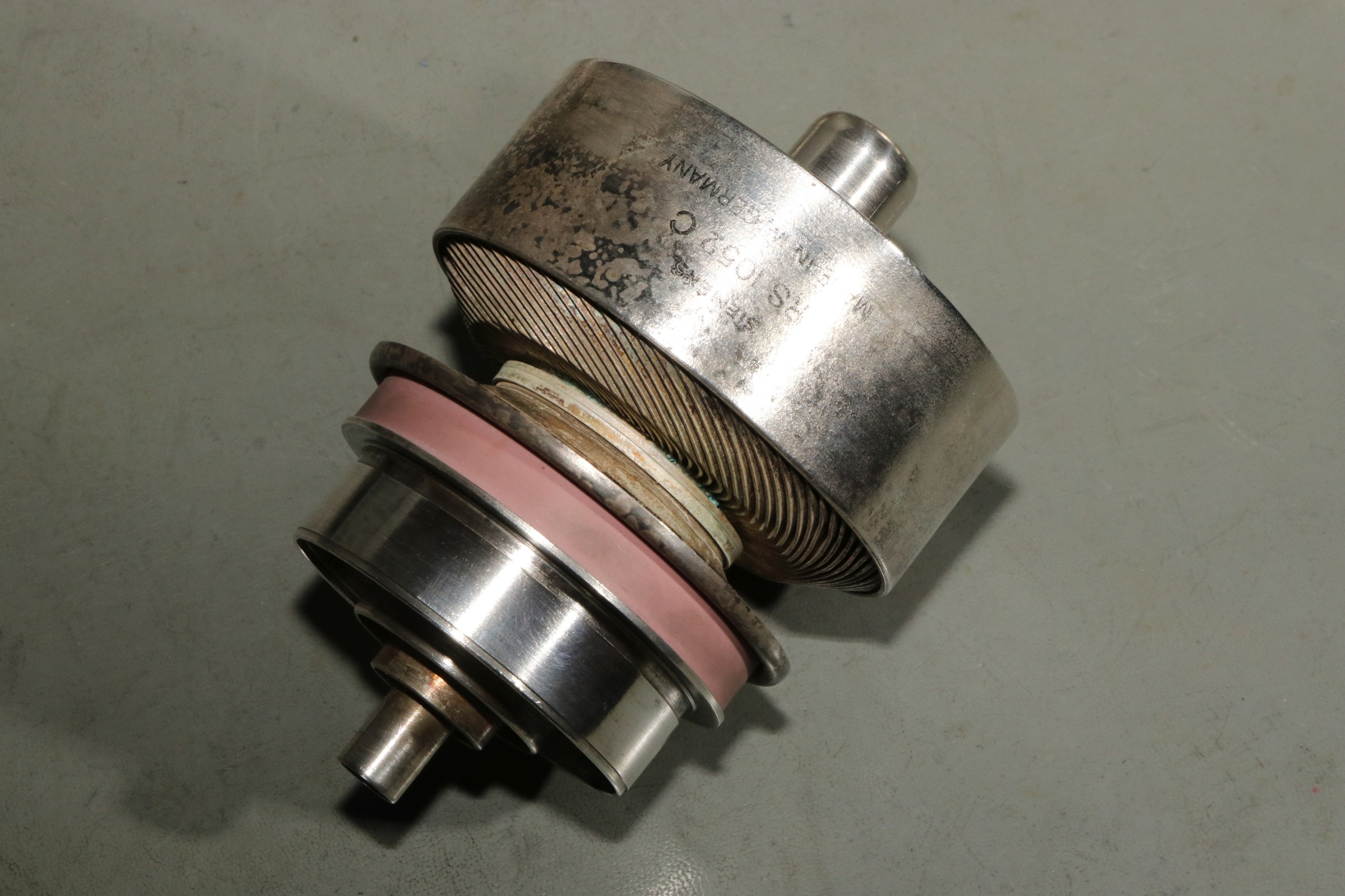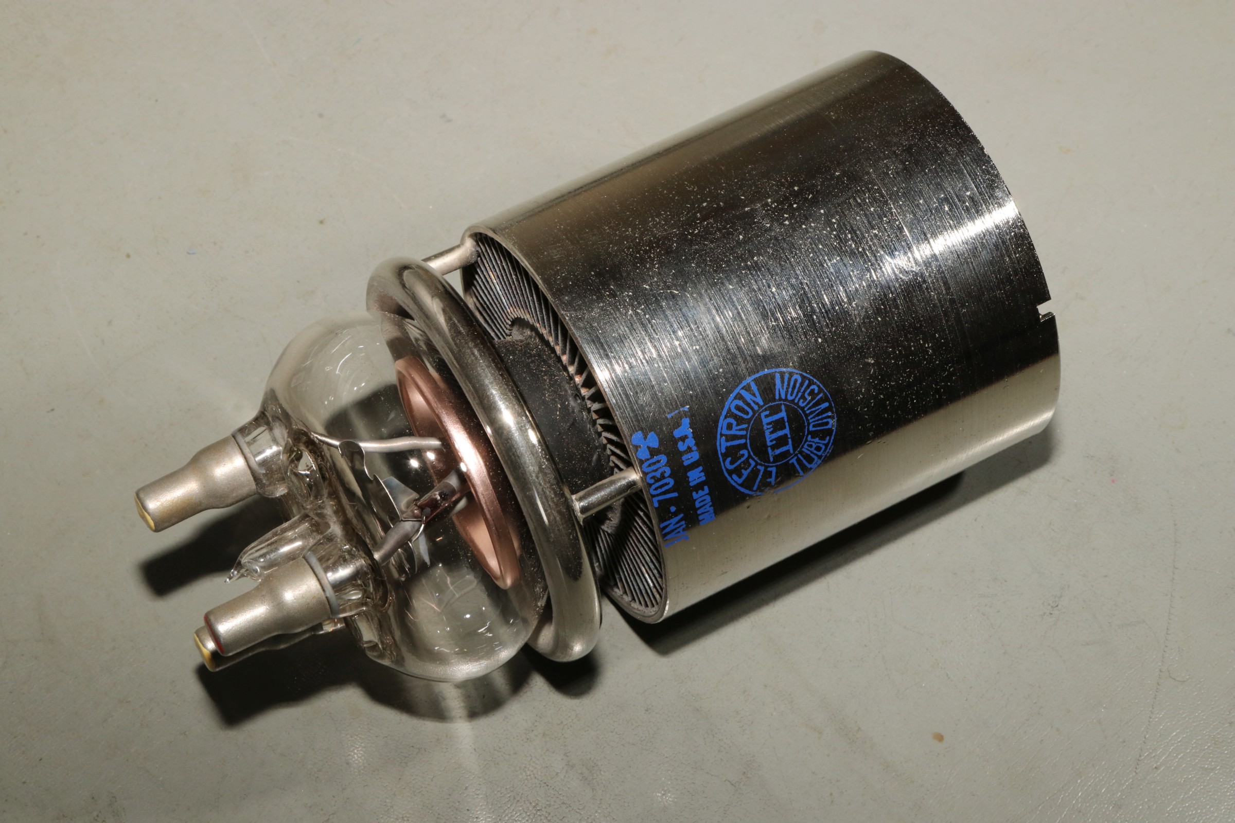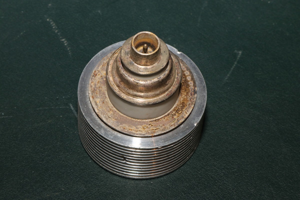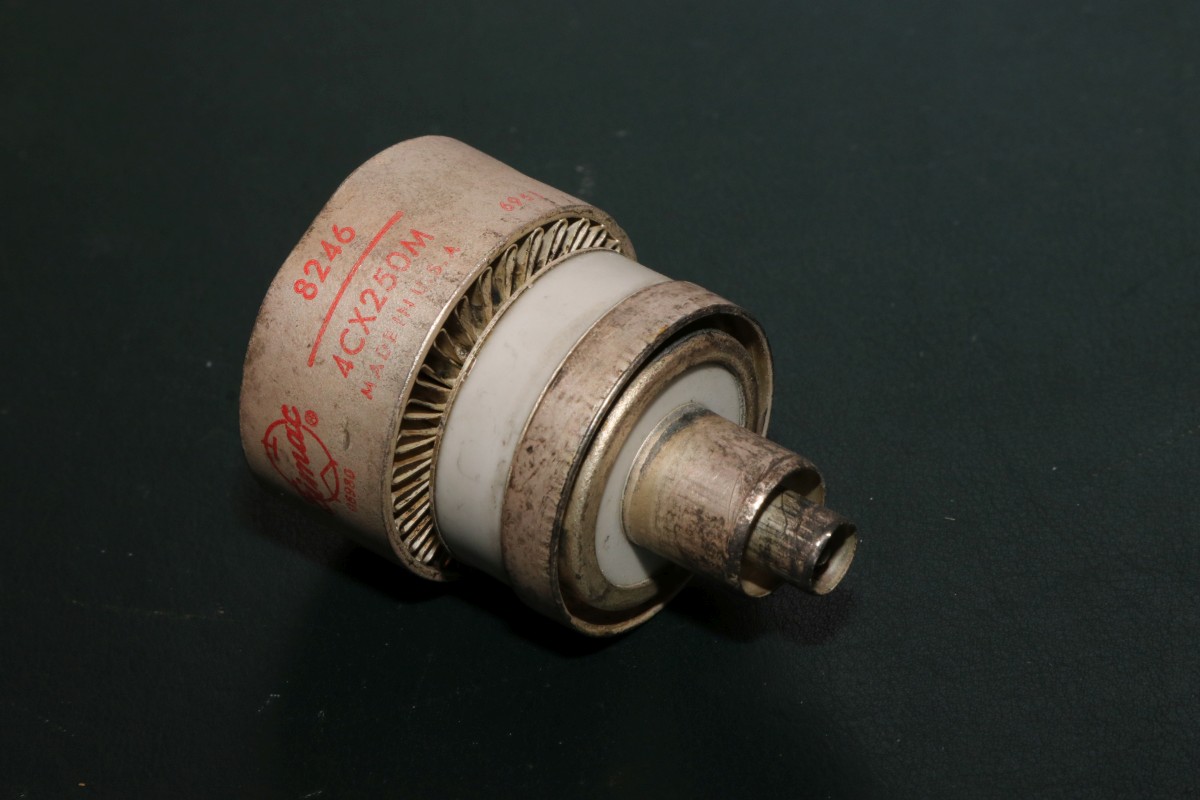 {Scheibentrioden von klein bis groß} Hier mal ein kurzer Ausflug zum Thema Scheibentrioden. Die machen als Hobby zwar wenig Sinn, haben dafür mit 1000V, mehreren KW und über 1GHz keine Probleme... Je nach Bauform. HF brachial! Ich bekam wieder Post von der Elektrobucht... Darin allerlei Röhriges - zum Beispiel diese russische Triode: Die sich bei näherem Hinsehen tatsächlich als zwei gegeneinander verschraubte Trioden entpuppt! Gegentaktstufe... und hier RS1052C - ein Klopper von Siemens, 1,5kg, Heizstrom 80A... dafür 790MHz, 3,3kV, 1,5A... - braucht man täglich... Hie ein 3GHz Triödchen der kleinen Bauform: 2C40A Eine YD1270: 4CX250M: TBL2/500 Und die Wald- und Wiesen-Triode 2C39A von verschiedenen Herstellern: Die gab es mit Glas- und mit Keramikisolierung... Hier noch eine kleine Scheibentriode unbekannten Typs, irgendwie erinnern mich die Kühlkörper immer an die Triebwerke aus Star-Wars... Eine TH316 - 270W Anodenleistung... Ja, es sind schon einige hübsche Exponate - vermutlich nicht mehr so gut, aber dafür hübsch anzusehen! Hier ist nur noch die Anode übrig - das verleitet mich zu einem Zerlegeexperiment im nächsten Beitrag! Und wenn man die Teile etwas putzt, dann sehen sie noch hübscher aus - Tube-Porn! Ein paar der nächsten Fotos sind sehr hoch auflösend - auf Mausklick! Ja, das ist keine Scheibentriode, aber eine brachiale Diode! Lag nur auch gerade so rum. 25kV Sperrspannung, 6A Dauerstrom... |