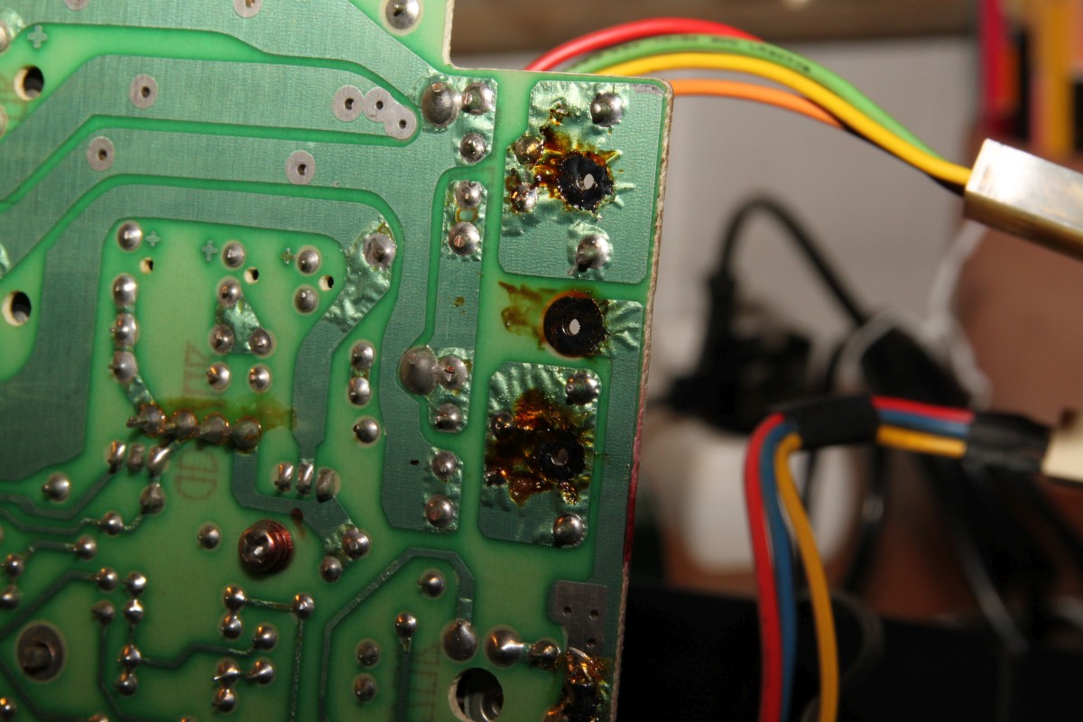 {Intention} Unter vielen anderen Patienten in meiner Klinik des Grauens stehen seit einiger Zeit auch zwei Vectrexen, deren Herrchen das permanente Brummen des Tons nicht mehr hinnehmen wollten. Endlich komme ich dazu, auch diese Verbesserung einzupflegen. Aber Vorsicht: dieser Eingriff ist aufwändig und Zeitintensiv! Man benötigt gutes Lötwerkzeug und eine ruhige Hand. Als Erstes wird der OPAMP eingelötet: die Widerstände... Kondensatoren... Kabel... Hier die Lötbrücken auf der Unterseite... Die vorbereiteten geschirmten Kabelstücke: Erster Schritt für den Einbau: Entfernen der Gehäuserückwand: Das Masseband zwischen CPU- und Netzteilplatine muss abgelötet werden! Ein Seitenblick: Von der anderen Seite: Der Drehknopf vom kombinierten Lautstärkepoti / Schalter kann abgezogen werden. Die Kontermutter entfernt man mit einer Flachzange. Die demontierte CPU-Platine... Die drei Spannungsversorgungsleitungen müssen abgelötet werden, die Position der beiden Außenanzapfungen ist austauschbar (rot), die Mittelanzapfung ist eindeutig (weiß). Jetzt ist das CPU-Board frei. Das Netzteilboard kann eingebaut bleiben. Ansicht von unten... Schritt 1: verbesserte Masse. Mit einem Glasfaserstifft wird der Lötstopplack passend entfernt und ein Kabel als Brücke gelötet. Freigekratzt... Gebrückt... Schritt 2: Anbringen des geschirmten Audiokabels. Dazu muss der vorhandene Stiftsockel ausgelötet werden. Mit Entlötlitze macht man dann die Lötaugen schön sauber: Steckerlos: Und schon ist das geschirmte Kabel dran. Ganz Vorsichtige können das Kabel an der Lötstelle mit einem Tropfen Heißkleber fixieren. Schritt 3: Ausbau des alten Kondensators am Audio-Ausgang und Einbau des Widerstands laut Anleitung auf der englischen Webseite (Links sind oben!). Bei der Gelegenheit hab ich gleich den Kondensator ersetzt, die werden ja mit den Jahren nicht besser... Der neue C: Jetzt müssen nur noch die Kabel des OP-AMP-Platinchens angelötet werden! Das Netzteil-Board, Lötseite - hier fehlt noch ein 1kOhm Widerstand: Hier muss er hin: Da ist er drin. Masse und +/- 5V findet man auf der CPU-Platine. Farbig sinnvoll gekennzeichnete Kabel erleichtern die Arbeit! Beim Zusammenbau sollte man das Reset-Kabel nicht vergessen... Jetzt wird das abgeschirmte Kabel an der Netzteil-Platine angelötet: So sieht es komplett aus: Je nach Feinheit des verwendeten abgeschirmten Kabels empfiehlt sich eine Fixierung der Lötstelle gegen Kabelbruch: Zum Schluss kann man die Platine mit einem Tropfen Heißkleber am Kunststoffgehäuse fixieren: Das war's. Es ist sehr aufwändig und zeitintensiv, aber das Ergebnis kann sich hören lassen. Der Brummton ist deutlich leiser, wenn auch nicht ganz verschwunden. Vor allem aber hängt die Lautstärke des Brummtons jetzt nicht mehr von der eingestellten Lautstärke ab. Ich finde, es hat sich gelohnt! Viel Spaß und Erfolg mit dem Nachbau, aber immer vorsichtig sein: ich übernehme keine Haftung für Schäden, die durch die Anwendung meiner Anleitung entstehen. Jeder ist selbst verantwortlich, für das, was er tut... |