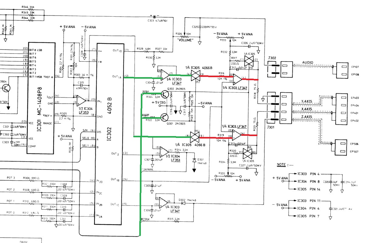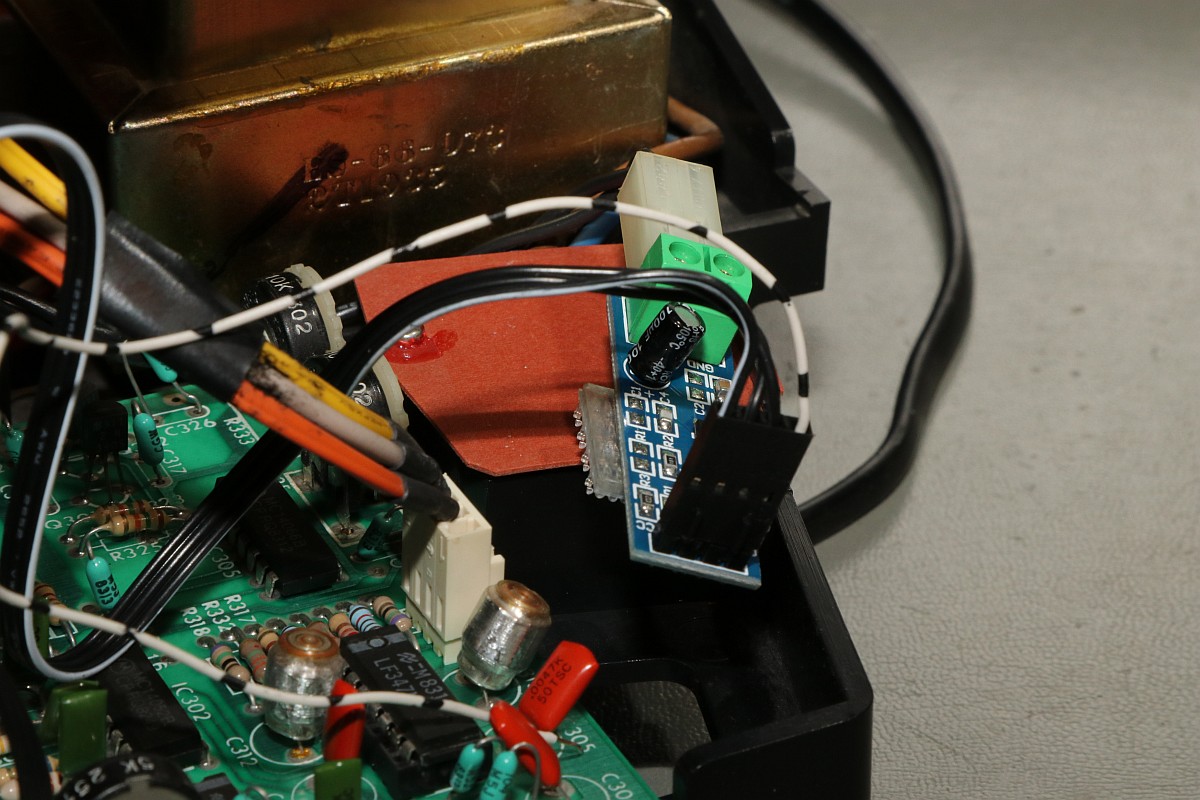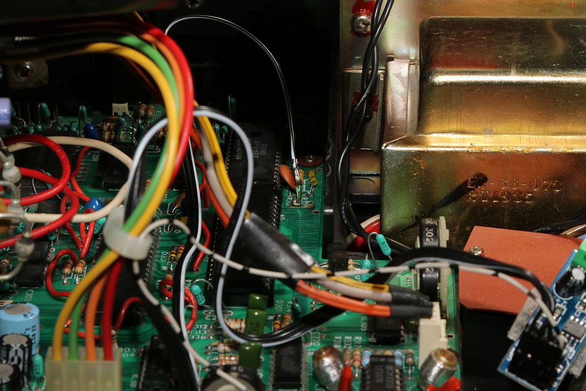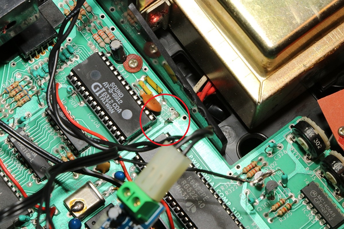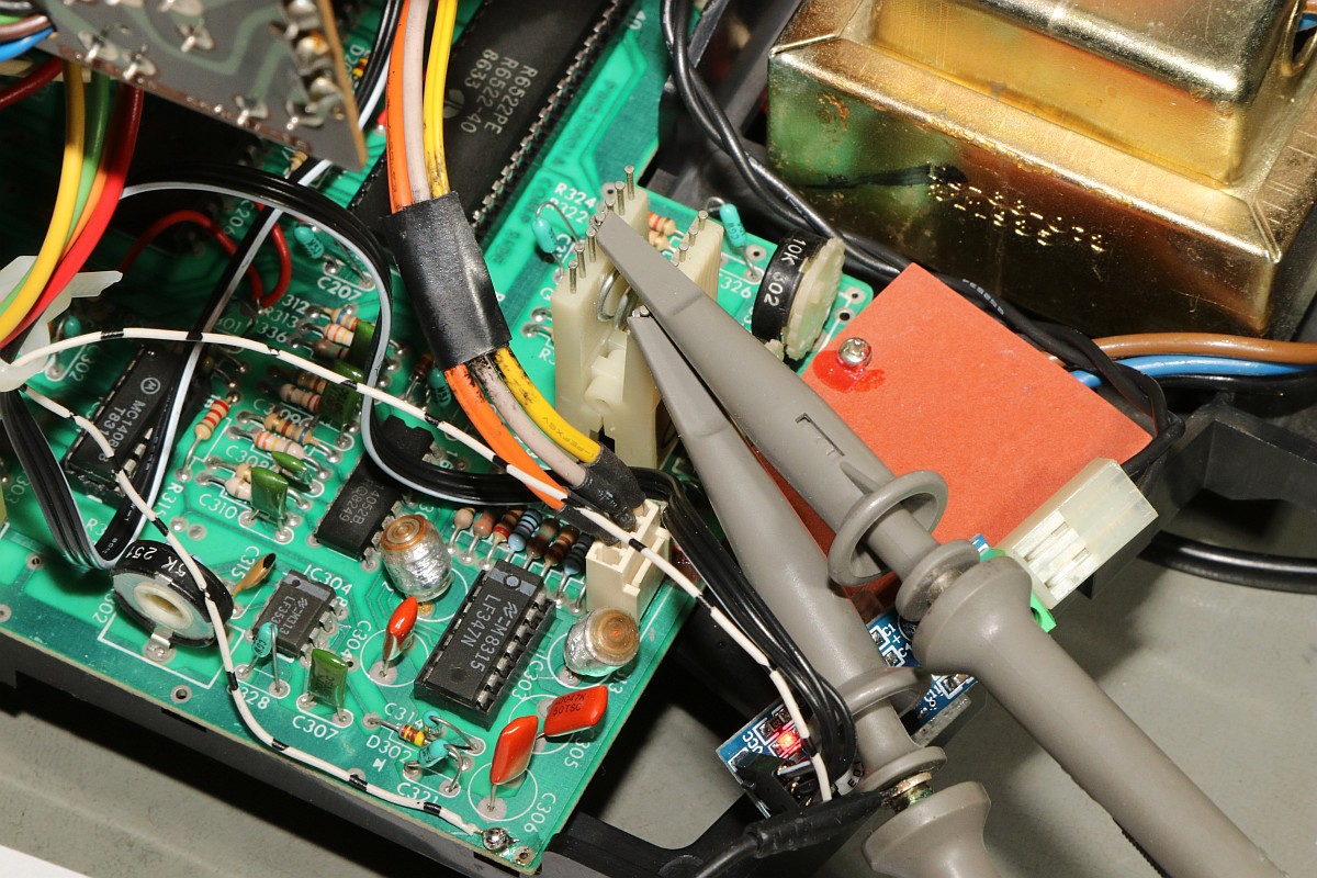 {Vectrex Reparatur - eine Mahnung an die Bastler...} Mich erreichte wieder mal eine Vectrex - Symptome: Spiel läuft, aber als Bild gibt es nur einen unscheinbaren Punkt, der sich nicht bewegt... Schalter kann es nicht sein, der wurde schon repariert - Spannungen liegen alle an. Immerhin ist das Teil vorbildlich sauber! Im Inneren verbirgt sich ein Anti-Brumm-Umbau mit separatem Audio-Kleinverstärker... Die Spannungen am Netzteil stimmen tatsächlich alle. Der Schalter tut, die CPU werkelt, Ton ist gut, also muss der Fehler tiefer liegen. Da auch die Hochspannung läuft (Glühfaden und Bildpunkt erzählen mir dies), messe ich mal am DAC-Ausgang - also eher am Eingang des Analogschalters: Das Bild ist richtig so, es ist deswegen noch kein richtiges Bild, weil die Integrierer erst danach kommen! Beide Kanäle laufen: Vor dem Analogschalter 4066 ist alles toll, danach ist alles Null... Der Steuereingang liegt fest auf -5V, obwohl die Ramp / Zero-Signale fleißig an den Transistoren anliegen... Die Analogschalter sollen Signale von +5V bis -5V durchschalten - dazu benötigen sie eine Steuerspannung von +5V (auf) bis -5V (zu)... die -5V liegen über die beiden Widerstände fest an - die +5V werden über die beiden Transistoren bei Bedarf zugeschaltet. Hier nicht. Warum wohl? Richtig: der Bastelversuch, den Audiverstärker mit 5V zu versorgen, hat an dieser Stelle schlicht die Leiterbahn von der Durchkontaktierung abgerissen. Erwähnte ich schon die schlechte Qualität der Vectrex-PCBs? Danach war natürlich für die 5V in Richtung Transistoren Ende. Eine Drahtbrücke reicht: Auf der Unterseite noch mal sauber verlöten - immerhin kommt man ohne Platinenausbau gerade noch so ran... Und schon haben wir wieder ein gutes Bild. Wir lernen: Verbesserungen führen bei der Vectrex oft zu bösen Überraschungen, wenn man nicht vorsichtig genug ist. ![]() |