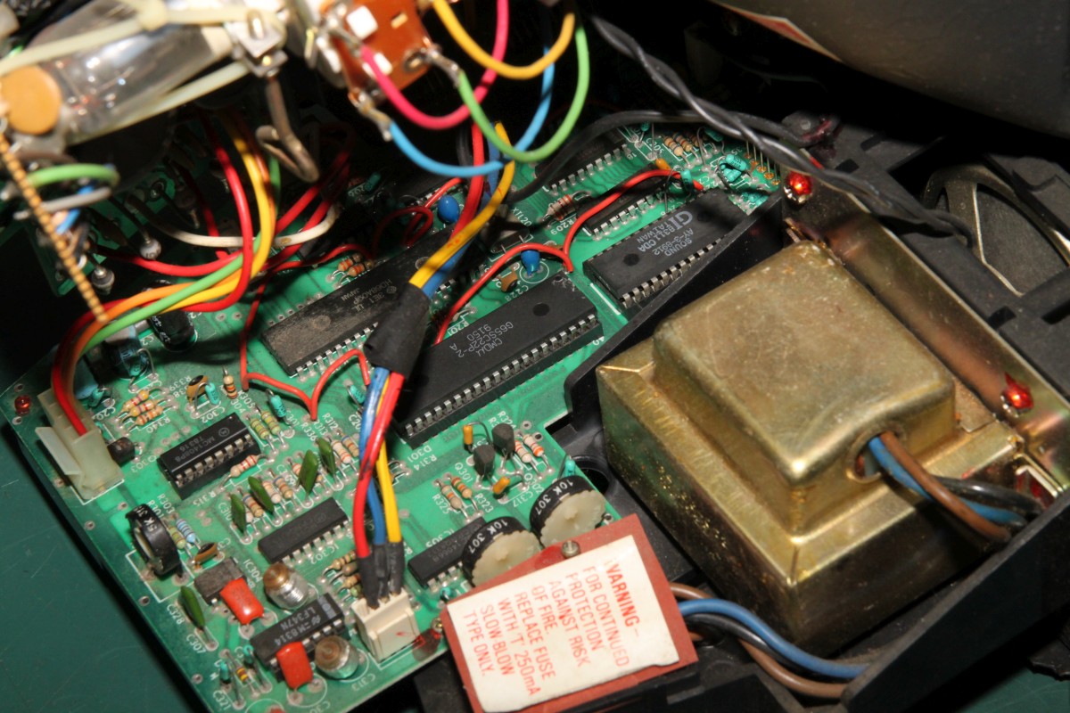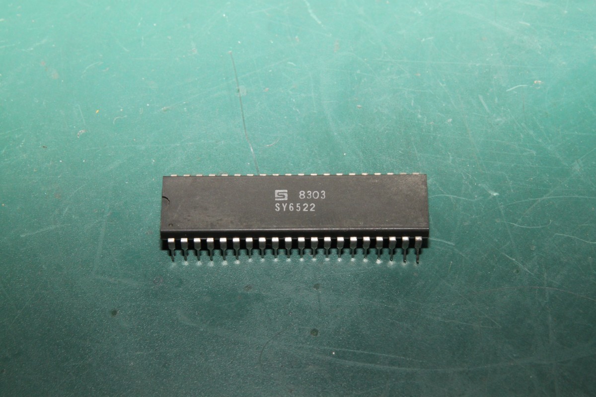 {Fehlerbeschreibung} Endlich einmal ein alternatives Vectrexproblem: kein Bild, kein Ton - und der Schalter funktioniert... Das hat mich erst einmal irritiert... die Spannungsprüfung ergibt: alle Betriebsspannungen liegen ordnungsgemäß an. Also muss das Oszi her. CPU taktet und läuft... komisch. Offensichtlich läuft das Programm, trotzdem keine Bild- und Tonausgabe. Ein Blick auf den Schaltplan zeigt, dass alle "wichtigen" Dinge über einen Schnittstellenbaustein 6522 laufen. Das Oszi zeigt mir: es geht viel hinein und es kommt nichts mehr raus...