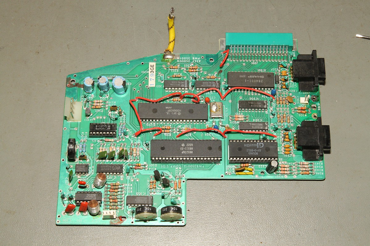 {Vectrex - die Siebte} Nachdem ich die Invasion nicht fertig bekomme, habe ich mich mal eine Vectrex zugewendet, die auch noch auf die Fertigstellung wartete. Diagnose: Schalterdefekt und einmal bitte Kondensatortausch... Diesmal wollte ich alles richtig machen, hab ja mittlerweile Übung. Und weil der eingelötete Schalter irre pfriemelig zum Zusammenbauen ist, wollte ich diesmal auch diesen auslöten und separat behandeln. Erstmal Stromversorgung ablöten: Schalter ausgelötet (mit Sauger und Entlötlitze...) Hier ist das Prachtexemplar: Zerlegt, gereinigt... ...und innerhalb von 3 Minuten wieder zusammengesetzt! Wow - das mach' ich jetzt immer so! Das CPU-Board: Der Konddensatortausch ist mühsam - Auslöten, saubersaugen und neue Kondensatoren rein - gut, dass ich dereinst von allem zu viel kaufte... Neu bestückt: ![]() Der Schalter wird sauber wieder eingelötet: Und verdrahtet. Hier empfiehlt es sich, die Kabel abzuzwicken und neu abzuisolieren... Ein vorläufiger Funktionstest: alles gut! Da fällt mir ein - Bildröhre - eben noch an gewesen - wir werden alle sterben - mimimimi... Oder aber man entlädt die Röhre einfach wie hier gezeigt: es hat leise "zap" gemacht... Die Ablenkspulen müssen abgelötet werden - Farben merken! Nee, oder? Zwei der Lötösen wurden nur durch das Zinn gehalten... Egal, das fixe ich am Ende... Die fetten Brummer muss man am vorsichtigsten auslöten - hier reißen gerne die Lötaugen mit raus, dann ist echt Ärger angesagt! Mit 400°C Lötkolben und leichtem hin und her gerüttel habe ich sie erfolgreich rausbekommen... uff... Eine Stunde später - alles getauscht: In meiner Kiste hab ich übrigens immer etwas Tüddeldraht. Mit dem kann man hier verhindern, dass man sich mühsam daran zu erinnern versucht, ob die Unterlegscheibe vor, hinter oder neben der Federscheibe lag... ![]() Der Vollständigkeit Halber habe ich noch den Kabelbinder angebracht, der den Röhrensockel auf dem Röhrenhals hält: Anschalten - laufen lassen - freuen... Es ist keine Arbeit, die wirklich Spaß macht, aber wenn alles so gut geht, wie hier, dann bin ich hinterher schon zufrieden! ![]() |
